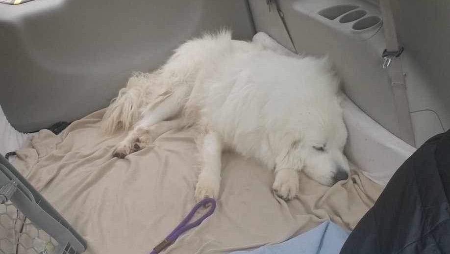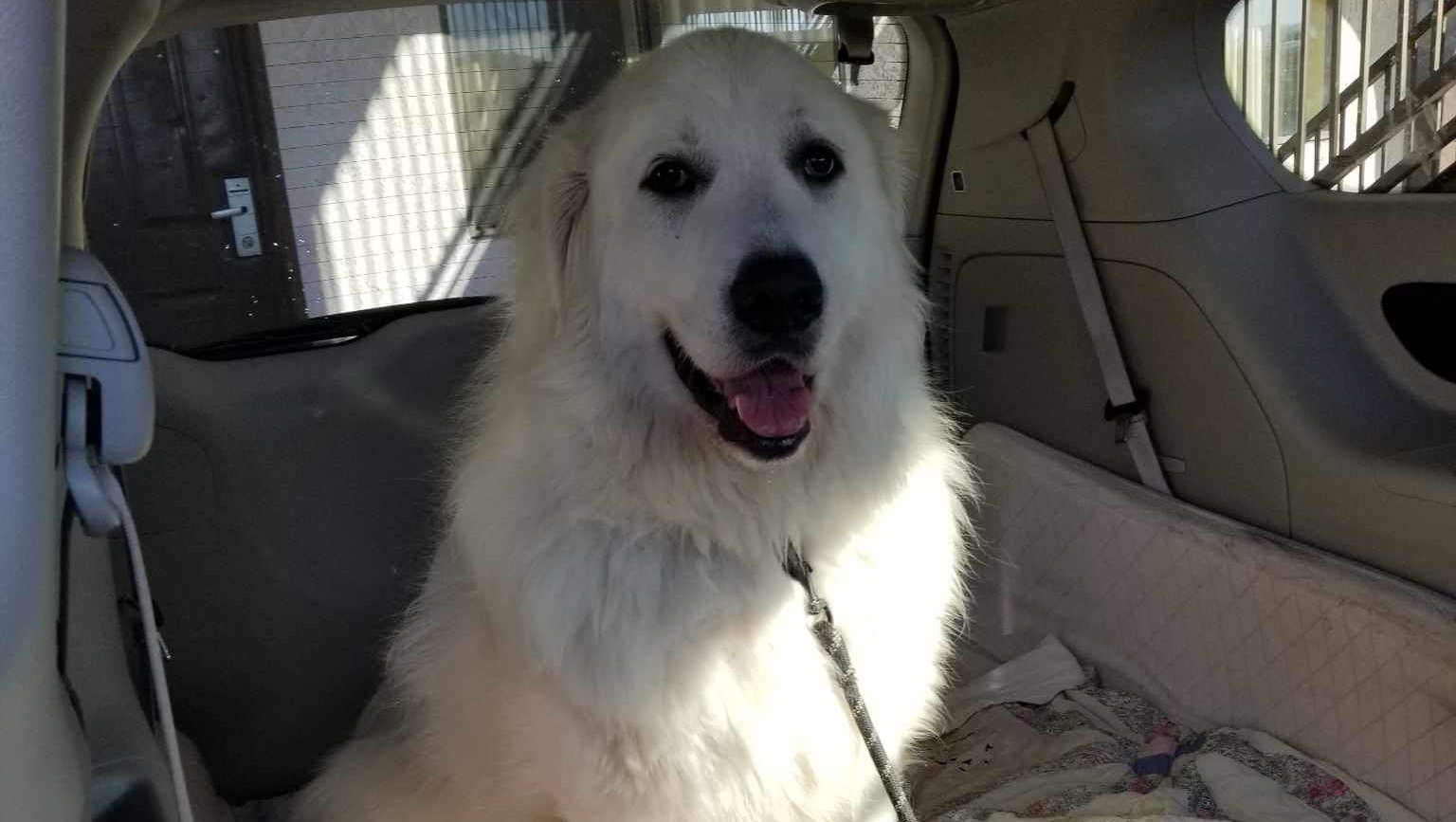 The big fluffy cloud has been pulled by Santa Paula Animal Rescue Center (SPARC), but isn't at his final destination yet. He still needs to make his way to Pyrenees Rescue of Western NC, a private Great Pyrenees rescue across the country.