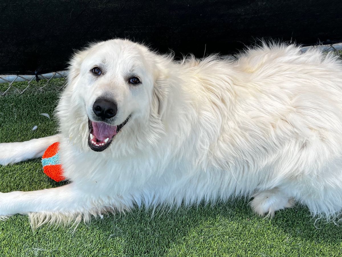 Presley came to Ventura County Animal Services (VCAS) as an owner surrender back in February. He has won the hearts of many volunteers, but, as a Great Pyrenees, he's not quick to return the favor. To his chosen few, he's a big fluffy teddy bear that wants all the pets, cuddles, and treats they'll give him. And in return, he will protect them fearlessly. As a weary Great Pyr, one can imagine that moving too fast with him, before he's comfortable and ready, can result in misunderstandings; his whispers can be misinterpreted as shouts due to his size. Previously arranged transport to NC didn't work out, and poor Presley has remained at VCAS with dwindling options.