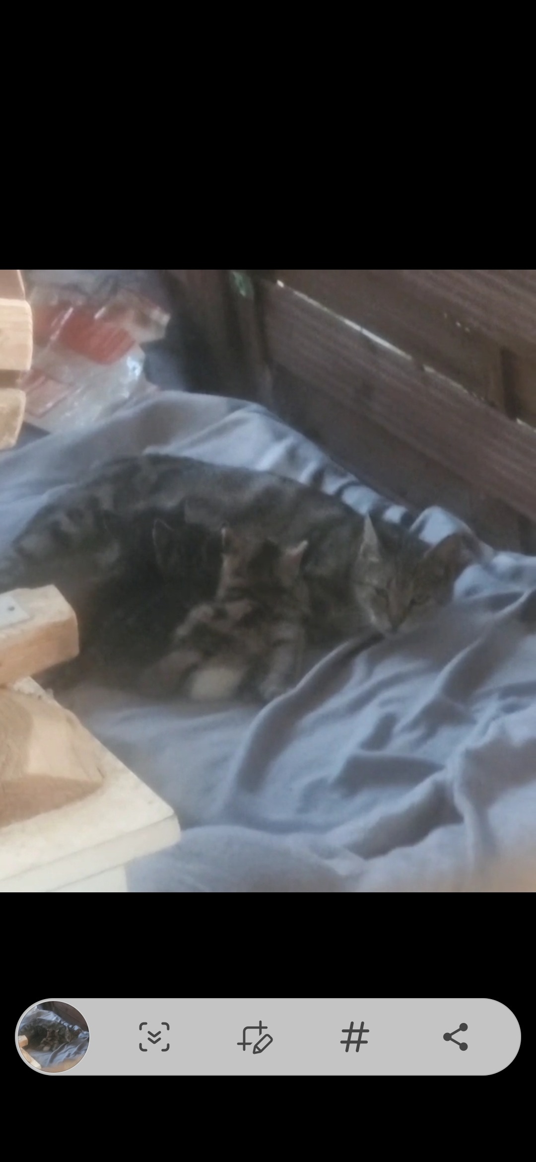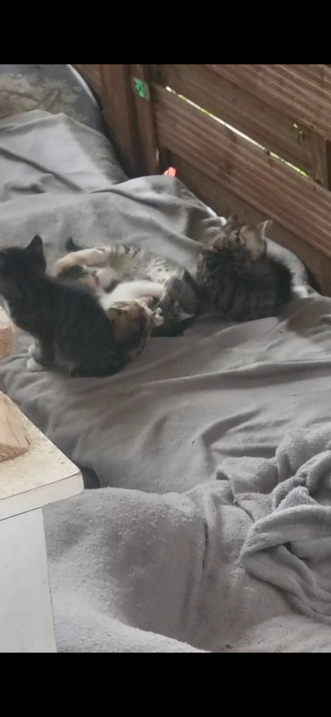 Ich verorge alle mit gutem Futter, denn Mama kam völlig ausgehungert zu mir und hat mir die kleinen in den Schuppen gelegt...