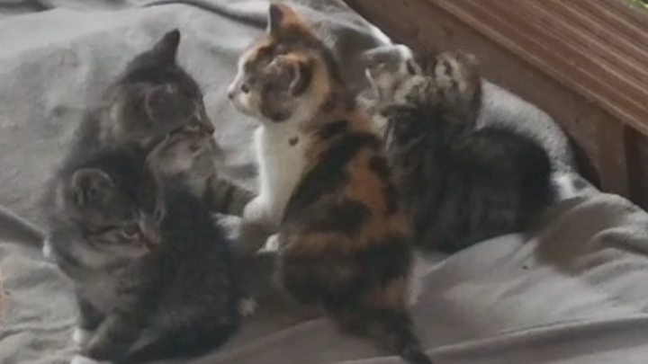 Ich beherberge momentan 5 Katzen- Mama mit 16 ,ca 4 Wochen jungen Pfötchen bei Fuß..