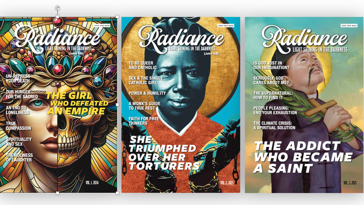 Radiance Magazine presents Catholic Orthodoxy in an edgy, refreshing light to contemporary young adults who are Catholic Curious but identify as "spiritual-not-religous." It is given free to visitors of 15 Catholic churches in London England and soon in Brooklyn and Manhattan NY.