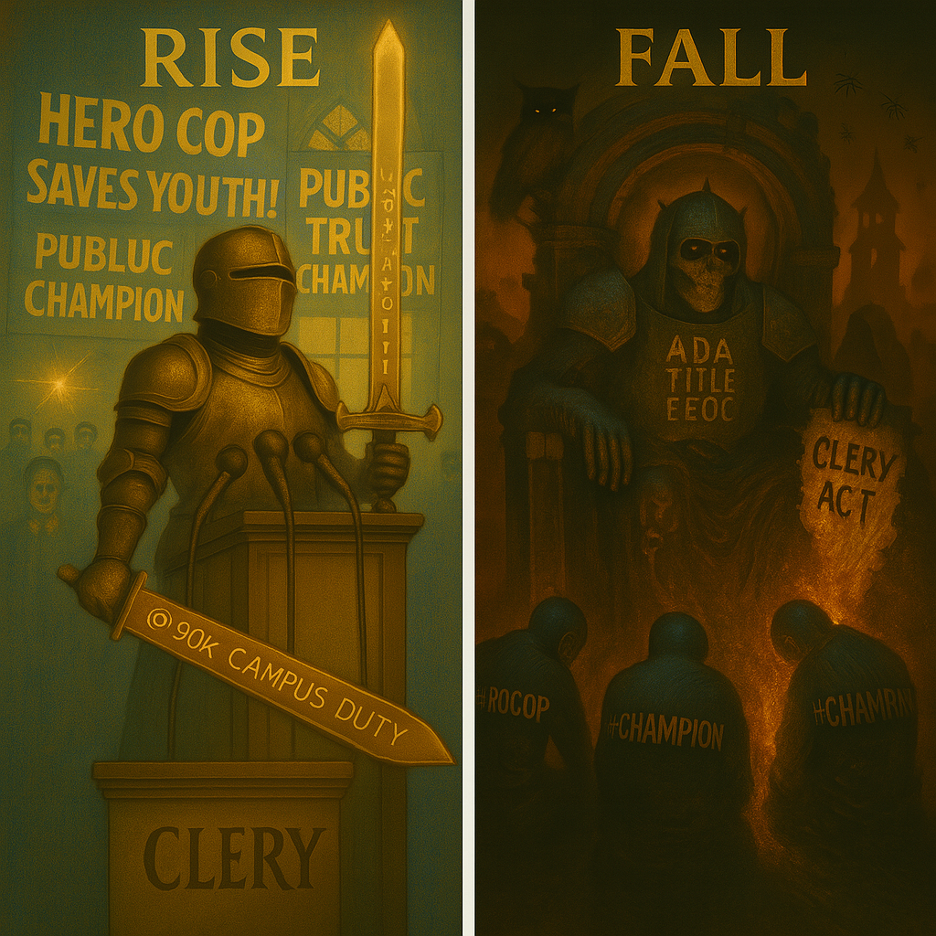 • You publicly tag yourself with “Campus Police Hero” narratives...