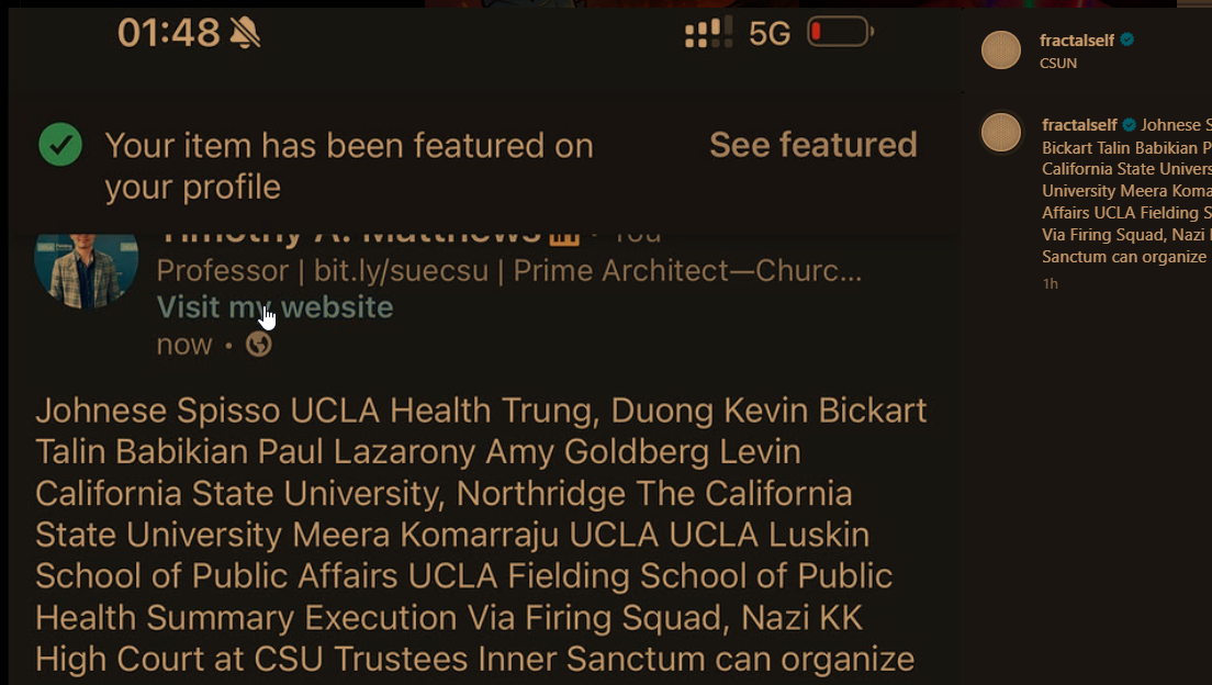 if i disappear or die, it's because CSU-Vatican-Allstate-LAPD-UCLA-Mossad killed me. i am not suicidal and i would never kill myself