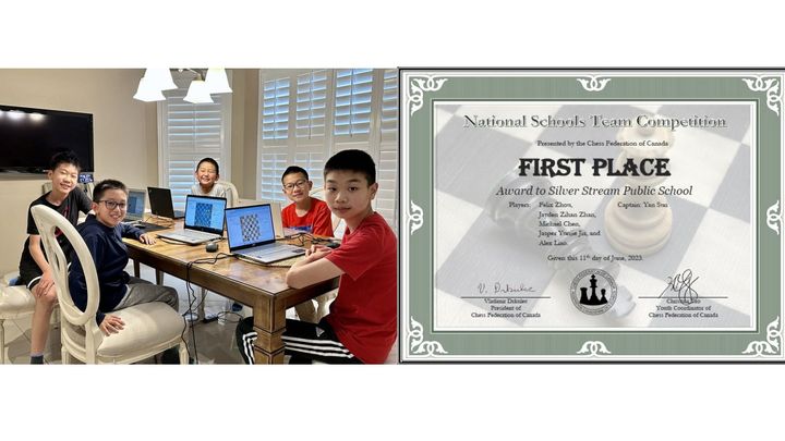 Fortunately, we put together as a team and won 1st place in the first-ever Canadian Schools Team Championship held on June 11th, 2023, which was an official national tournament hosted by the Chess Federation of Canada (CFC). We have also been invited to participate in the prestigious FIDE World Schools Team Championship 2023, which will take place in Kazakhstan from Aug 3 to 8, 2023. We are super proud of ourselves and very excited to represent Canada and the school to attend the World Final. This is a remarkable opportunity for us to compete against the best school teams around the world, showcase our skills on an international stage, inspire young players and promote the chess game across Canada!