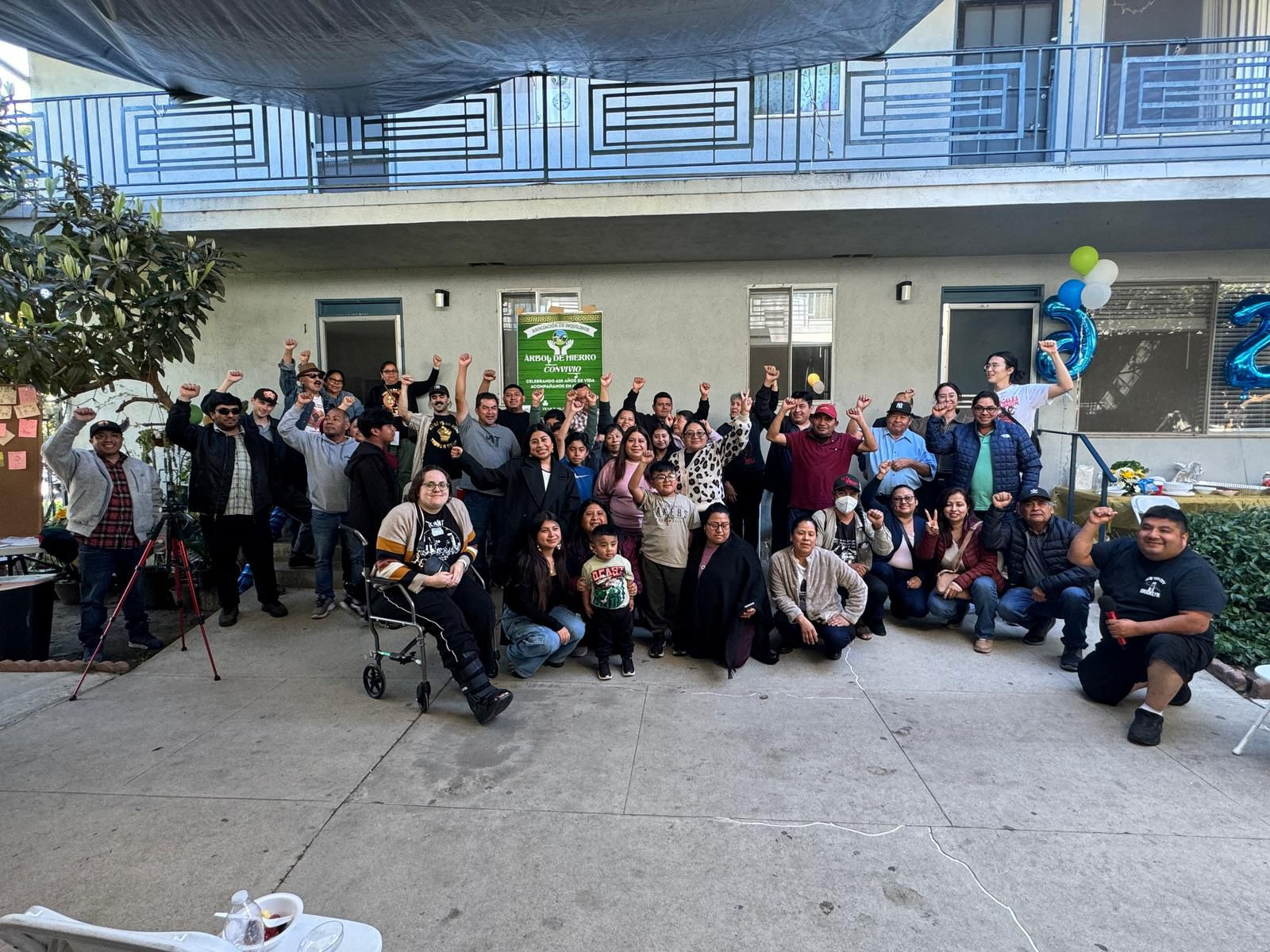The Arbol de Hierro tenants’ one-year extension of tenancy expired in December of 2025, and they now face a court battle to defend their homes. Many of the tenants have small children and disabled or elderly family members who have established local support networks. They cannot afford to stay in Los Angeles if they are displaced from their units, and now they are asking for community support in raising funds for legal fees. They are grateful for donations of any amount and for your support in protecting the Oaxacan community of Los Angeles.