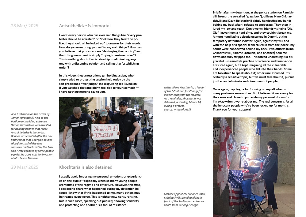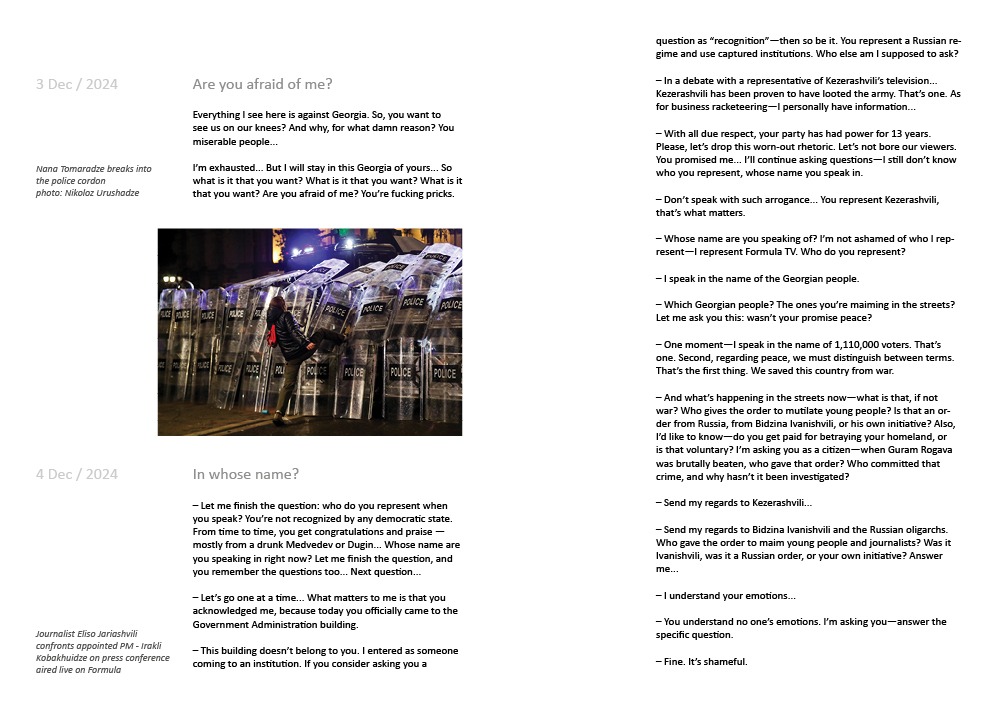 Through Silk Road Fragments, I am currently working on Daughters of Maro, the platform’s first and initial project: an archival and publishing initiative documenting Georgia’s ongoing protest movement, which surpassed one year on November 28, 2025. This campaign raises funds to support the publication of a book based on the Daughters of Maro archival installation, as well as to help maintain the platform where the material is researched, translated, and preserved.
