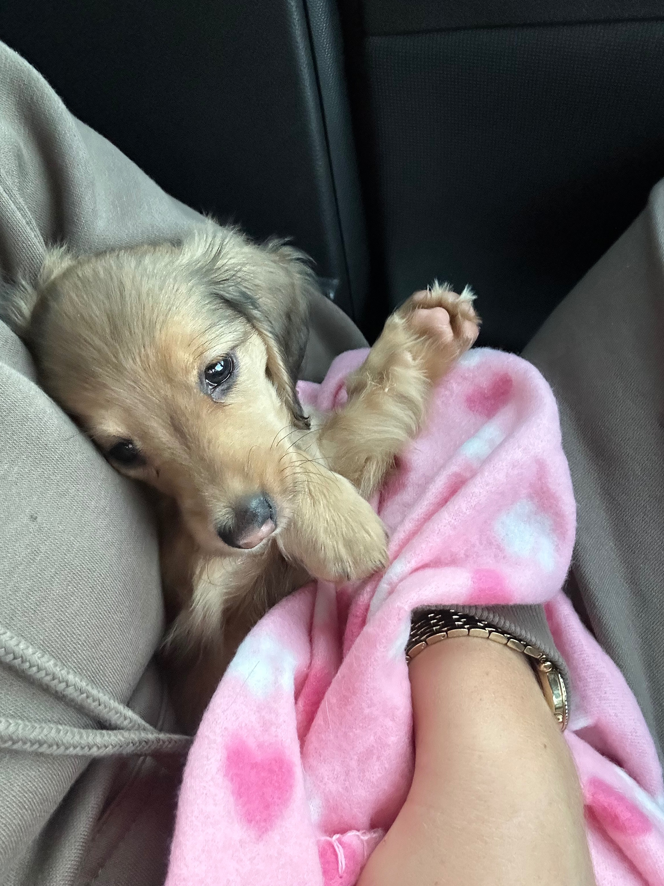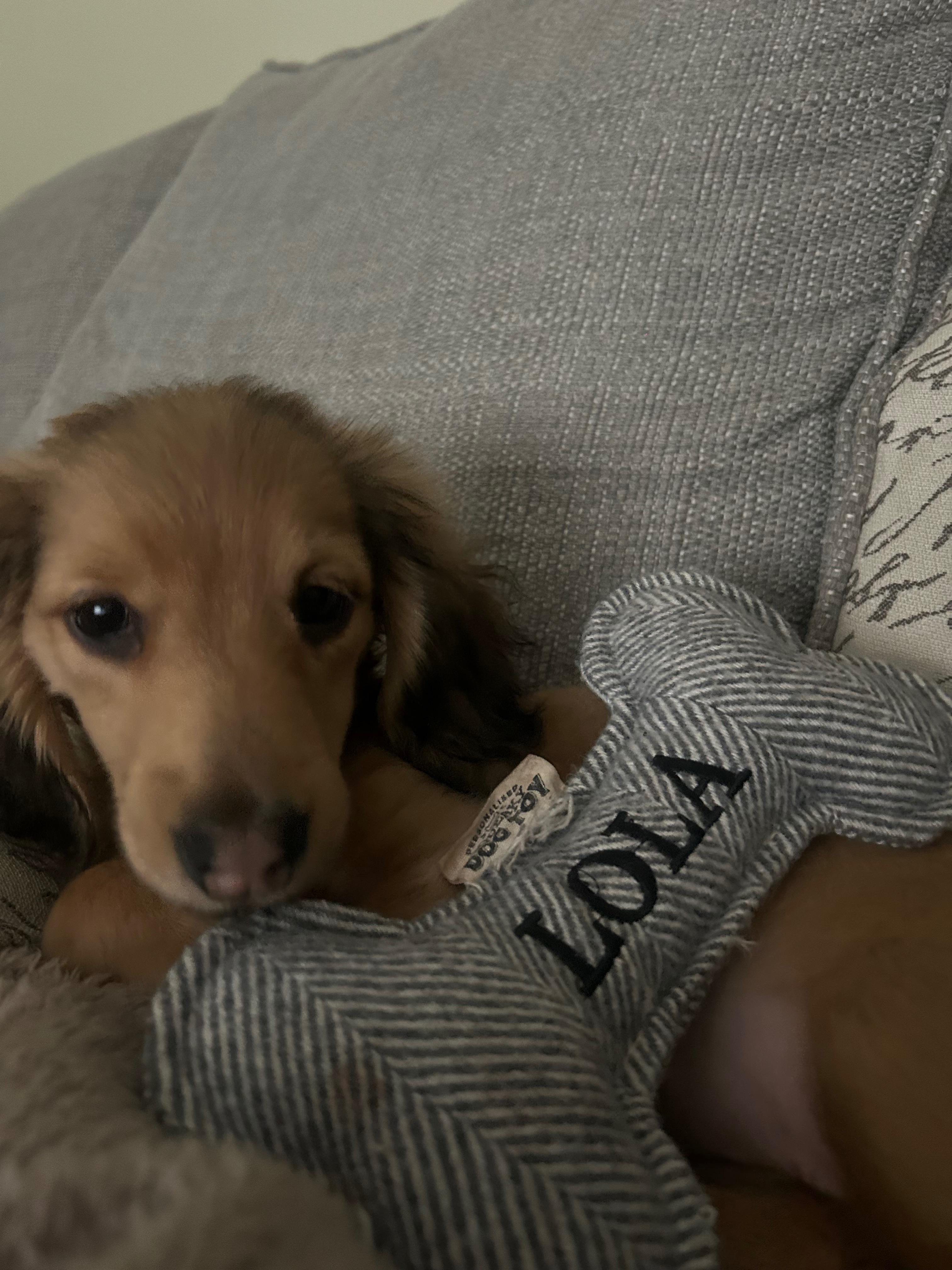 Hi my name is Lola I’m a 5 month old dashound. Full of life and full of mischief, sometimes I think my name is “LOLA NO” as my humans love the word no as I gets myself into all sorts. I love to go on walks chase birds and love to cuddle with my mom and get my belly rubs from my dad.