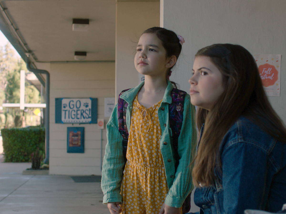 Emerson, 12, anxiously waits outside the elementary school for her sister Alyssa, 9, to get out of class and is relieved when she sees her. Their Mom, Kristen, arrives to pick them up from school. Alyssa offers to carry the tote bag they bring back and forth, but Emerson says she's got it. At Mom’s house, Emerson helps Alyssa with her homework and then falls asleep while reading her book. Later, Mom wakes up Emerson and they talk about how Emerson has been feeling overwhelmed. We see the custody schedule marked on a calendar in purple and green marker, and the next morning Emerson and Alyssa get ready to go to their Dad’s. At Dad’s apartment, they settle in and talk over lunch. Emerson takes a big drink of water to help alleviate the anxious feeling she has in her chest, and Dad suggests taking Emerson to the doctor. Later, the three are playing a board game when Alyssa realizes her favorite stuffed animal elephant from Mom’s house is missing. Emerson tries to calm Alyssa down but then she starts to panic since she was the one in charge of taking the stuffed animals. The girls search their room, but the elephant isn’t there. Alyssa calls Mom and asks if she can check her room at Mom’s house. Later, Mom calls back with the good news that she found the elephant, and Alyssa asks Mom to bring the elephant to Dad’s. Emerson tries to comfort Alyssa, but Alyssa needs to have the elephant because it’s from Mom’s. Dad tells Mom that he doesn’t want her coming to his place to drop it off. At night, Emerson’s breathing is uneven, but Alyssa comforts and grounds her. The next day they go to the park. They are peaceful in each other’s company and support.