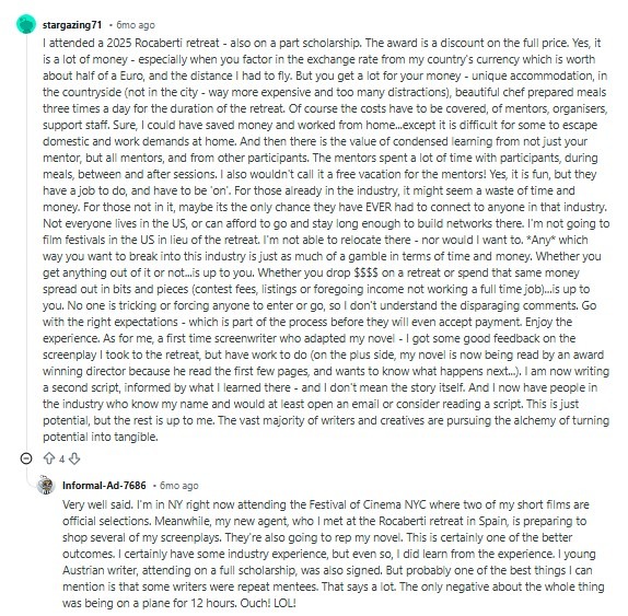 Earlier this year, I heard about the Rocaberti Writers Retreat, and as soon as I saw that they sometimes give out scholarships, I applied. The retreat brings together a small group of just 16 writers from around the world for an intensive week of mentoring with leading film and literary industry professionals. For someone like me, without money or fancy connections, it is a dream opportunity.