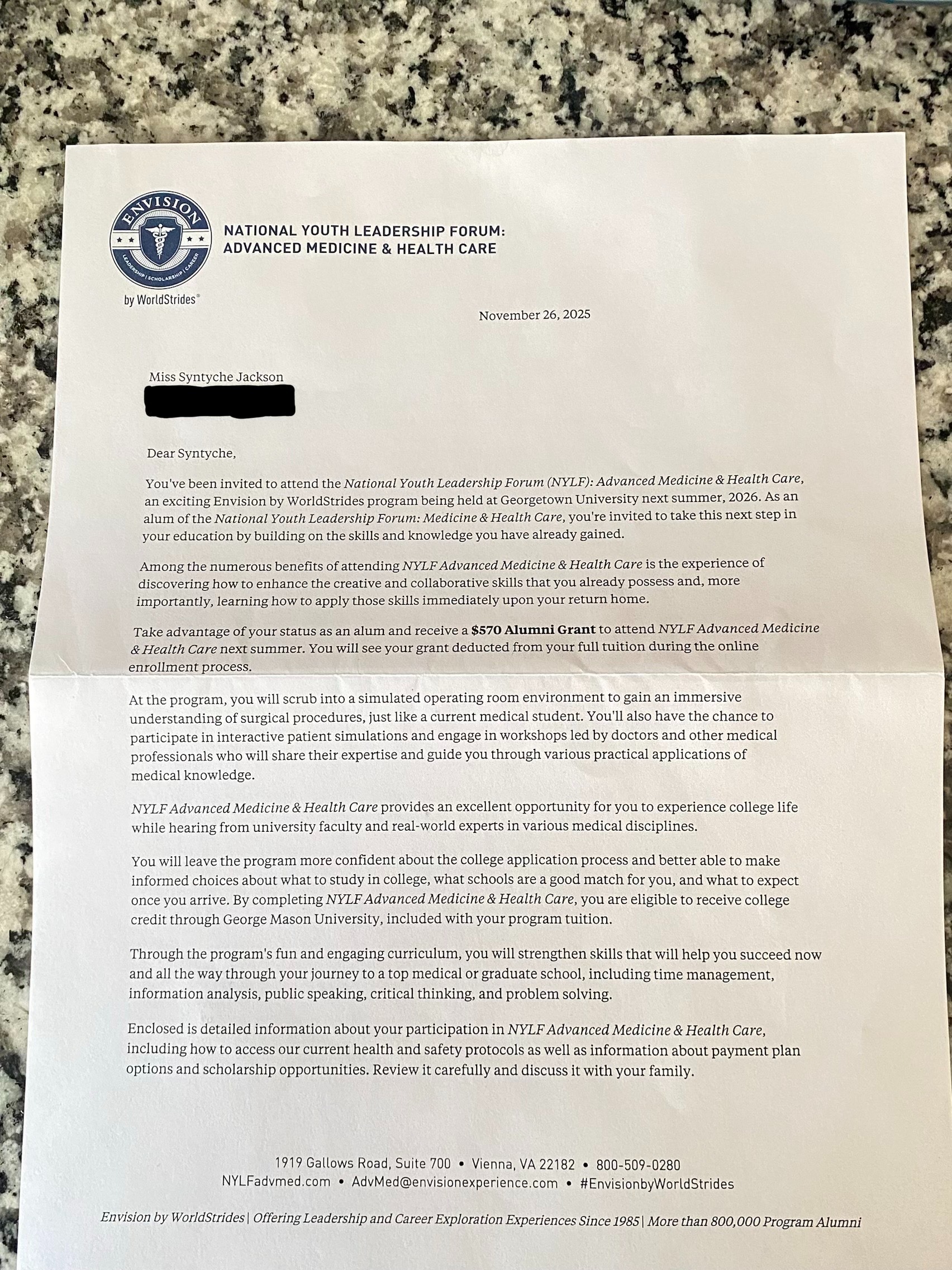 My name is Syntyche, and I want to attend the NYLF: Advanced Medicine & Healthcare Program in the summer of 2026. This program will give me the opportunity to get ahead in my future career as a Neurosurgeon, and it will also allow me to learn things firsthand that are typically taught only at the college level.