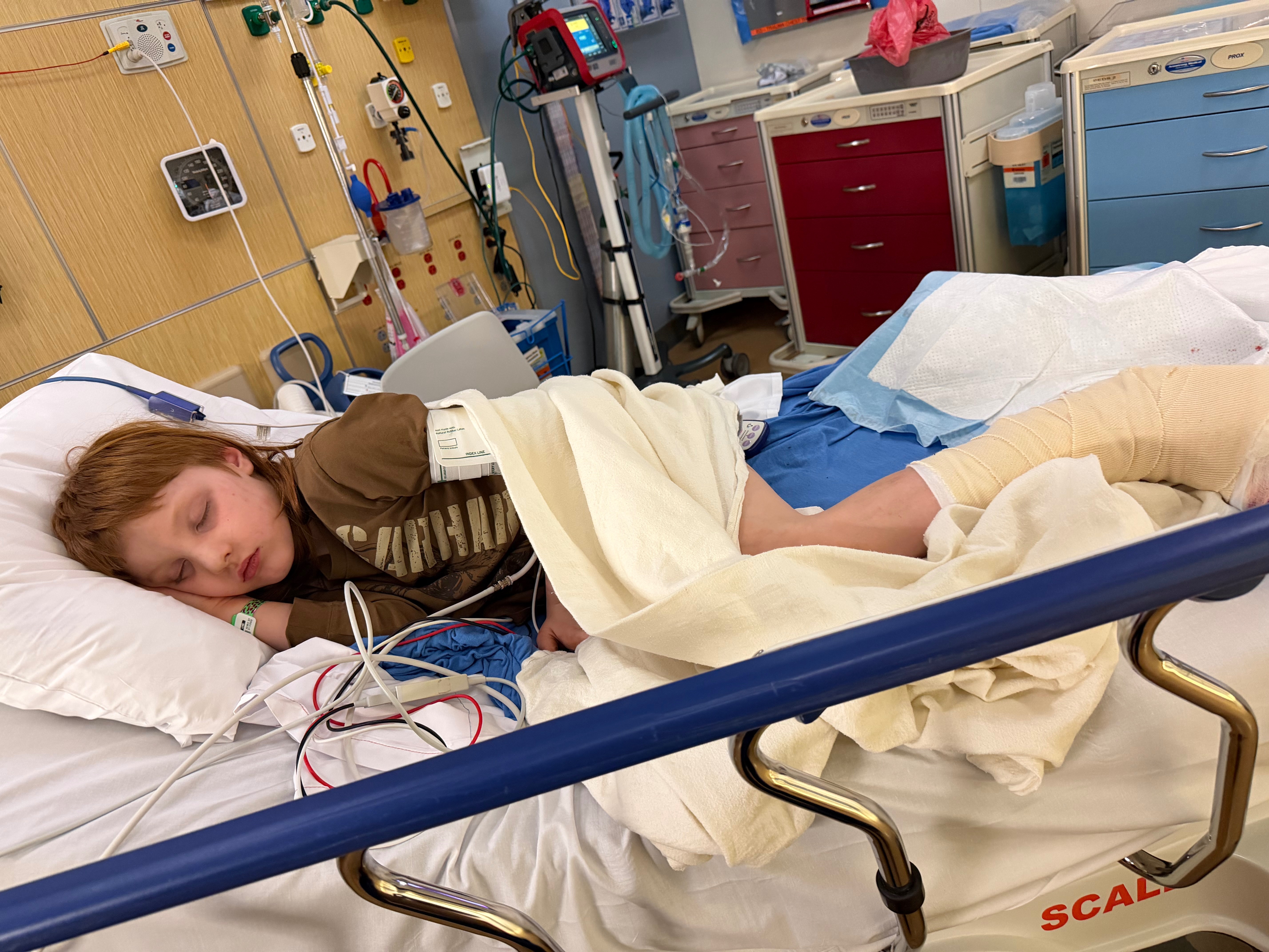 This accident has landed him in Randall Children’s Hospital, where he’s been for almost a week already, and has already had two surgeries. He still has at least one more surgery (for a skin graft) before he can come home but he has a very long road ahead of him with more surgeries, more skin grafts, physical therapy and later, relearning to walk.