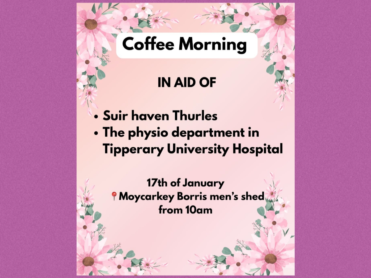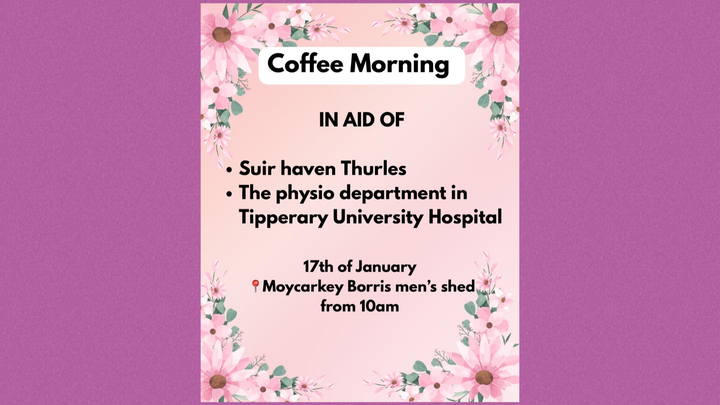 Im holding a coffee morning on the 17th January in the Mens Shed at Moycarkay borris gaa from 10am for two great causes.