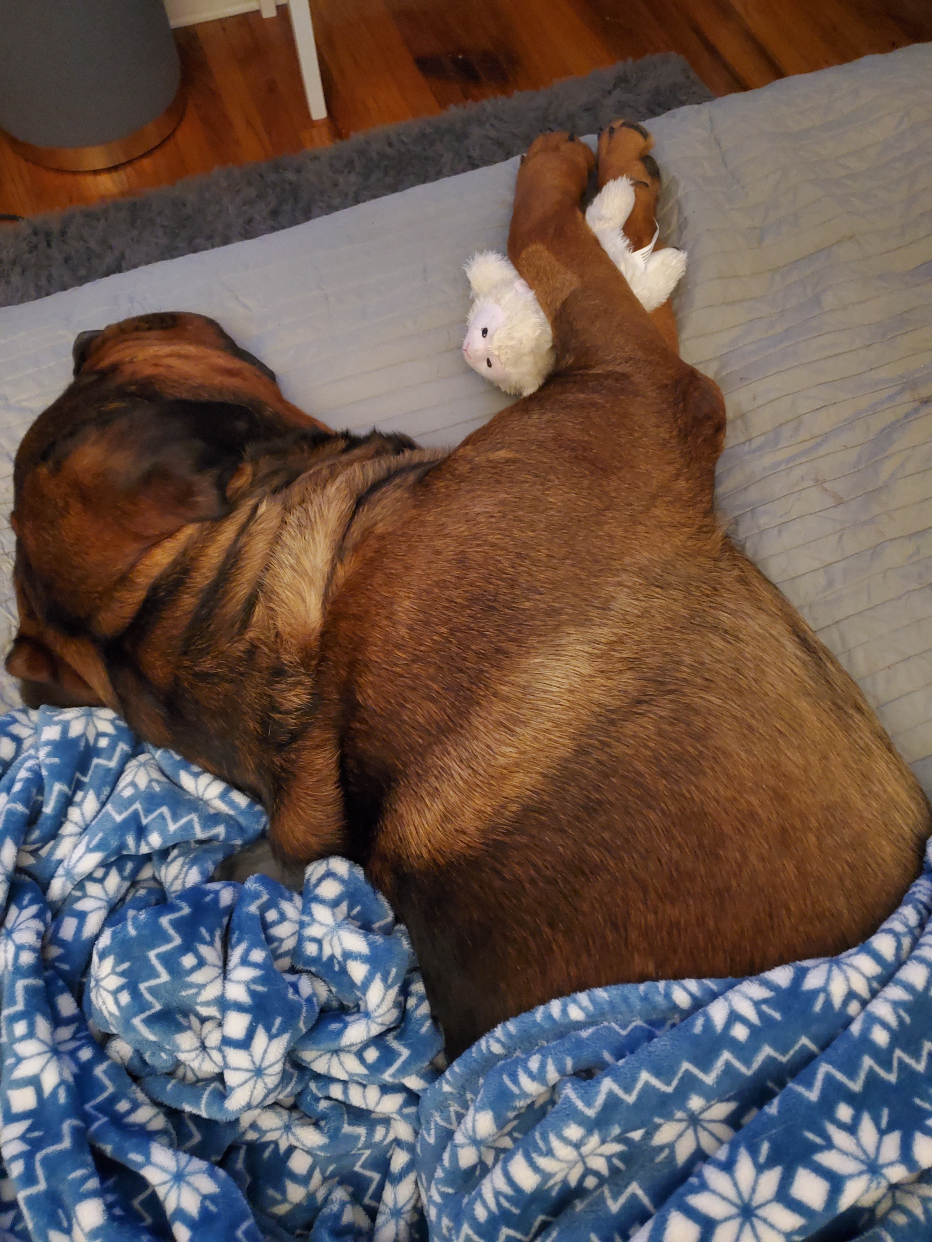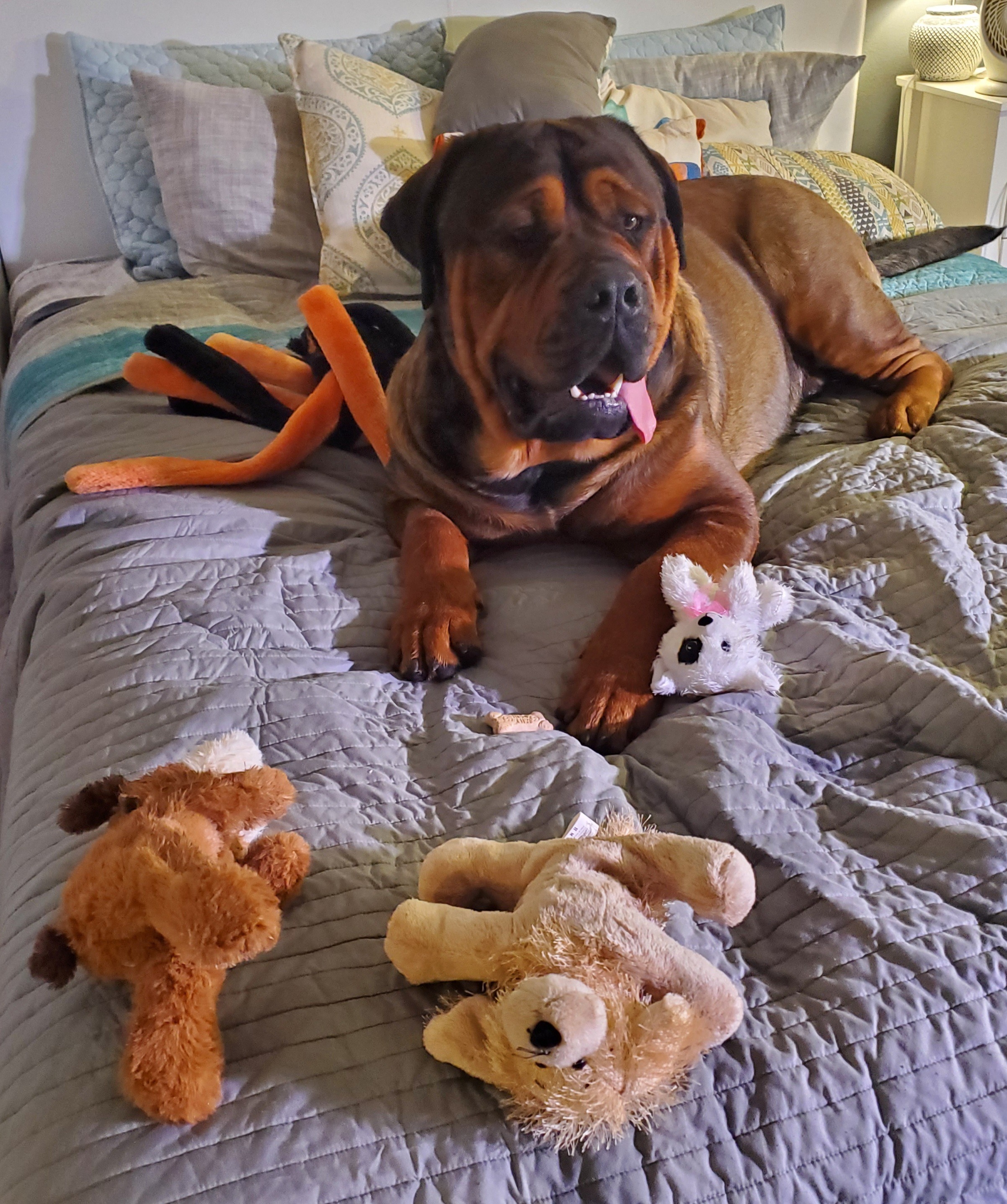 My Baby Rocco needs your help. He has an intestinal blockage. Three vets in 2 days and he is going into surgery. For anyone who haven't had the privilege of meeting Rocco, aside from being absolutely handsome, he is loving, playful, curious, mischievous, and he is my savior. We lost Bear unexpectedly this past Christmas day from bloat. He didn't make it through surgery. I was absolutely lost after his passing. I didn't think I was ever going to overcome the debilitating grief. Then Rocco came into our lives and saved me. He brought a smile back to my face, and joy and laughter into our home. Not a day goes by that he doesn't make me laugh. He loves his "babies" and he will get every one of them out of his basket and they will be spread all around the house. He loves laying in the grass and watching the world go by. He loves cuddles and more than anything he LOVES belly rubs. He spends countless hours waiting at the window for his daddy to come home. I spend literally hours a days petting him and rubbing his belly.