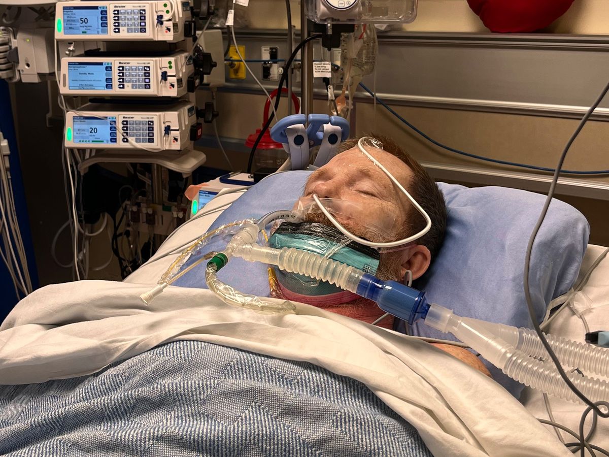 David in the recovery room after his heart valve replacement surgery in August 2023