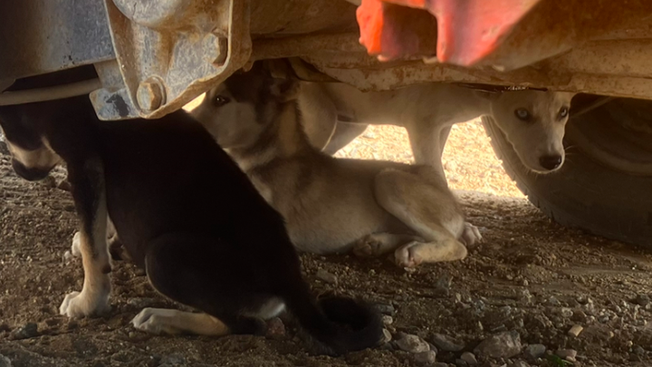 On Monday, September 22nd, a very kind woman named Julie, replied to my post and agreed to take the husky-looking pup. At that point, I hadn´t had contact with any of the pups as they were hiding under the van and terrified. I tried many times but they ran from one side to the other and I could not catch them. But because Julie agreed to take one of the pups, I made it my mission to catch her and the other two and give them shelter in a kennel I had built for my own three dogs (all rescues from Mexico).