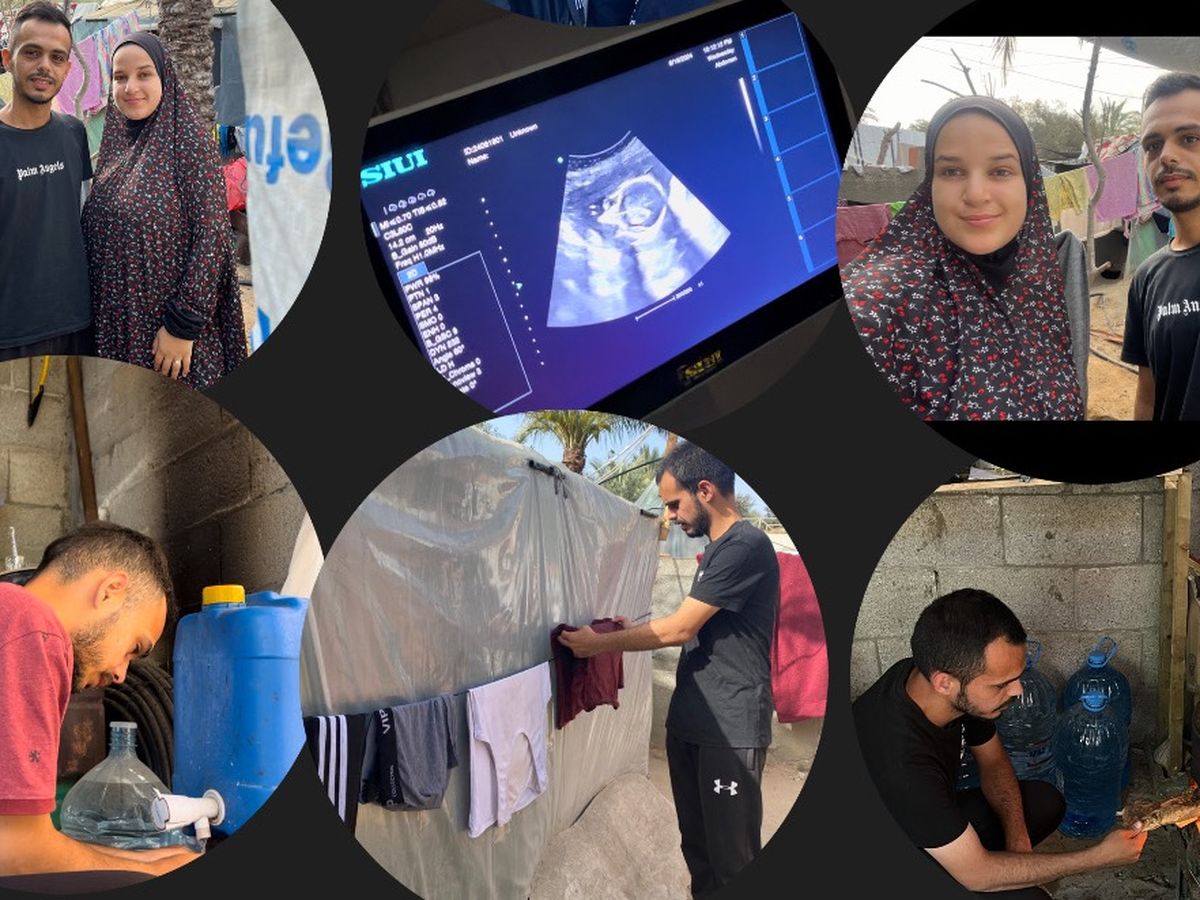 We are Muhammad and Fadwa from Gaza ,, we prepared a beautiful house for us to get married and live happily, but now war destroyed our house and our dreams , and now we live in a small tent. There is no enough drinking water, food, or medicine and life in tent is very hard ,, we cant sleep ,,eat,,cocking very well ,,