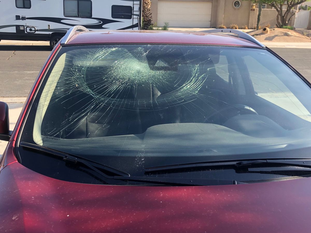 Sometime after 8am 4/27 both of our car windshields got smashed by a bowling ball left in the yard.