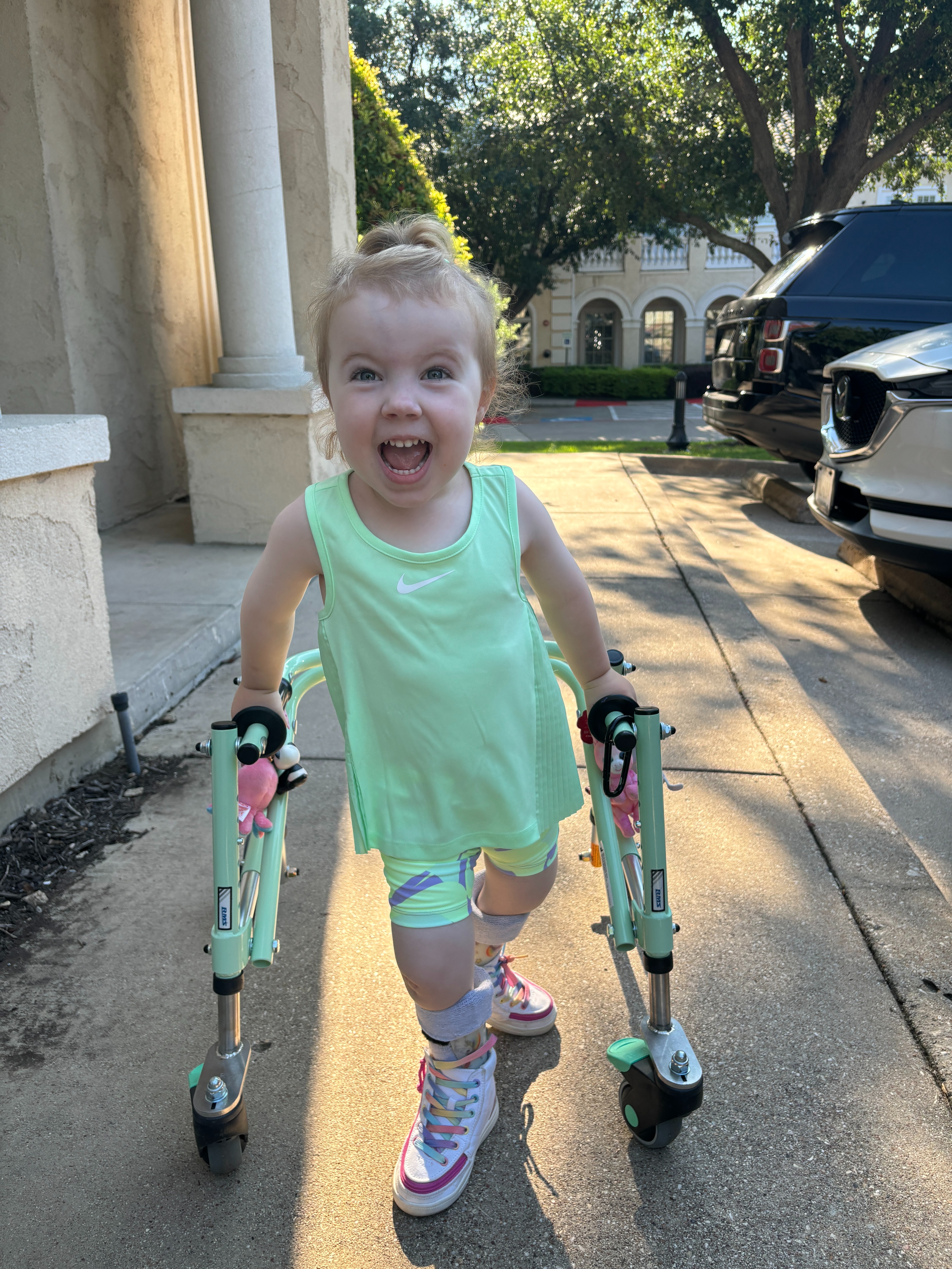 When Aoibh was a baby, her surgeon wasn’t sure if Aoibh would ever be able to achieve sitting to sit in a wheelchair. Walking wasn’t even mentioned as it was never on the cards for her. But, Aoibh being Aoibh, and with intensive therapy and relentless effort, she started walking independently at 2 and a half years old. She has met many health professionals over the years, and she baffles everyone she meets with what she achieved and overcome. She is truly miraculous.