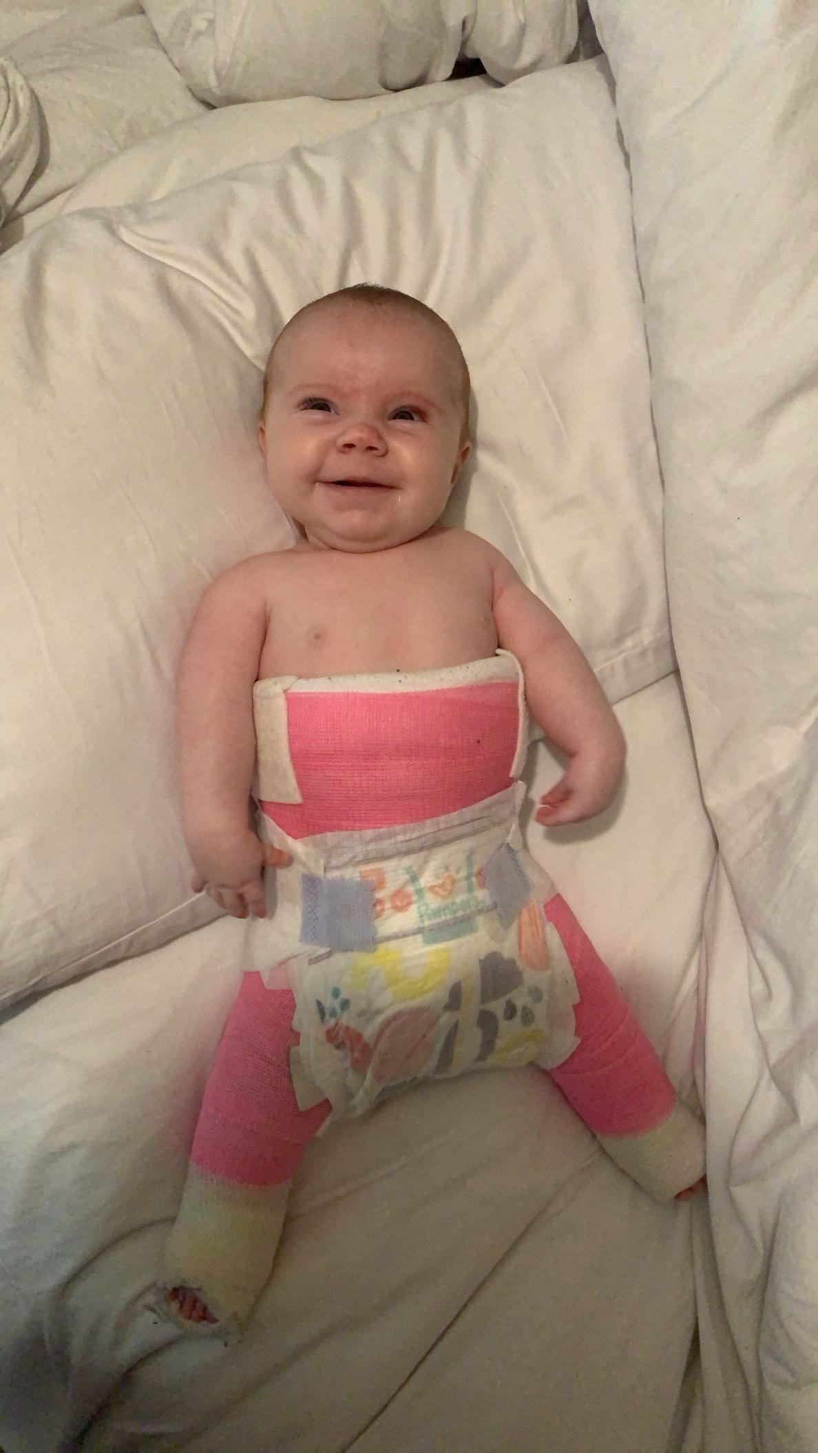 However, Eavan & Philip have now exhausted all their options financially to help Aoibh and they have nowhere else to turn. And, unfortunately, the nature of Aoibh’s condition means that, as her little body grows, it wants to revert back to how it was when she was born. Growth is her body’s worst enemy. So, it is a constant battle to maintain her flexibility and strengthen her muscles as she grows. Her day-to-day life consists of a rigorous routine of massage and stretching, amongst daily OT and physiotherapy. Unfortunately, her left leg has become extremely stiff and no longer bends at all. Both of her hips are dislocated, and her hip flexors have become excruciatingly tight and painful. They have received a very worrying prognosis unless they intervene as soon as possible. It is only a matter of time before her hips become severely arthritic, and she develops scoliosis. It could be even sooner than this that she loses her ability to walk and even her ability to sit upright. Intervention is required urgently, and it involves complex surgery of her hips and legs, and an extensive period of recovery and rehabilitation over 9-12 months. Due to the rarity and complexity of Aoibh’s condition, there is currently no surgeon here in Ireland with the specialist training and skills to complete her surgery. Therefore, they need to travel to the US to have this surgery done.