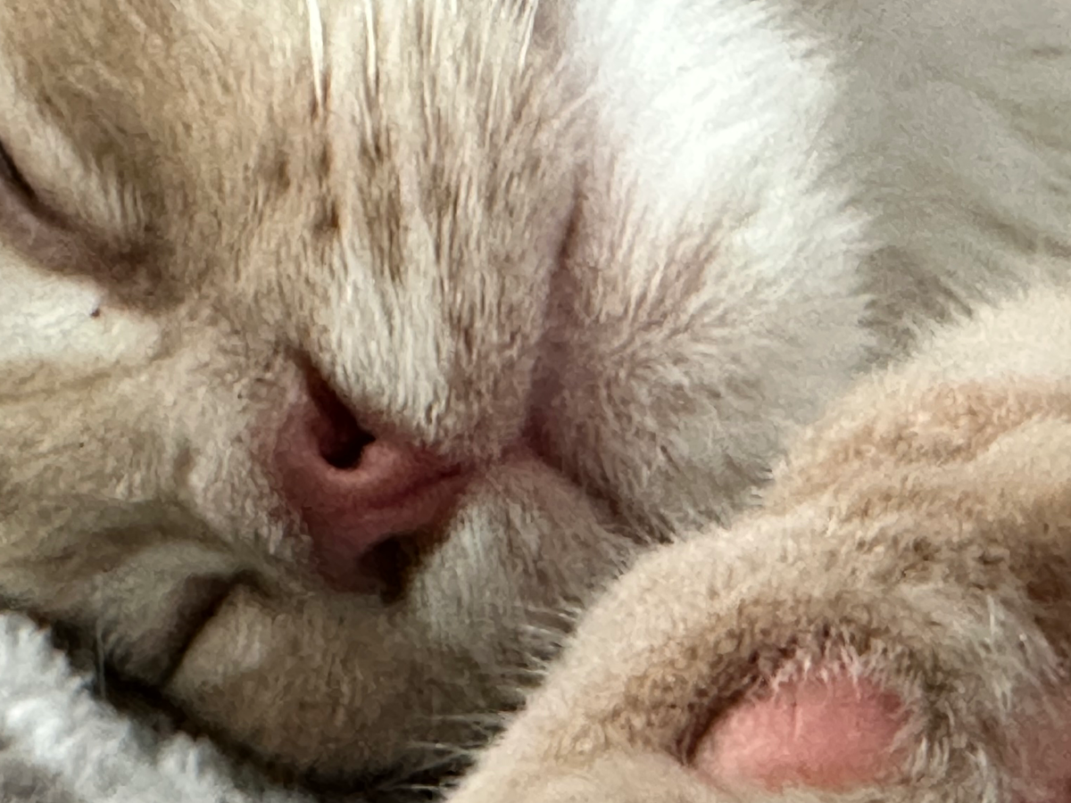 At first, frankly, he smelled awful. The wound was infected, and he was in pain. Mama S. gently cleaned the wound, and watching for signs of infection spreading and he was getting better day by day. But there was something else too. It seemed like something strange was thumping under the skin of O’Malley’s chest! If you looked closely, it kind of looked like a heart beat, and it was so big for such a small kitten.