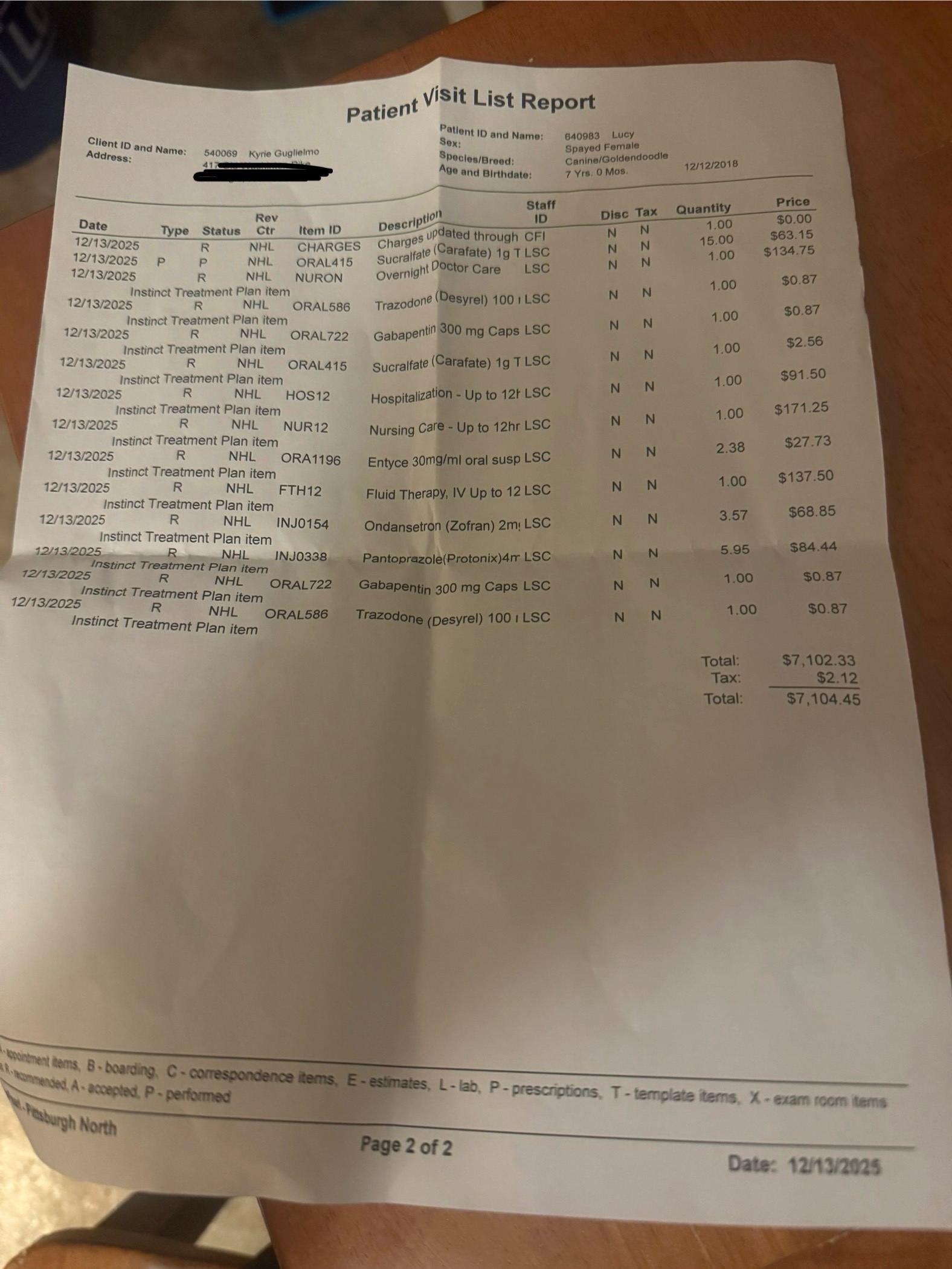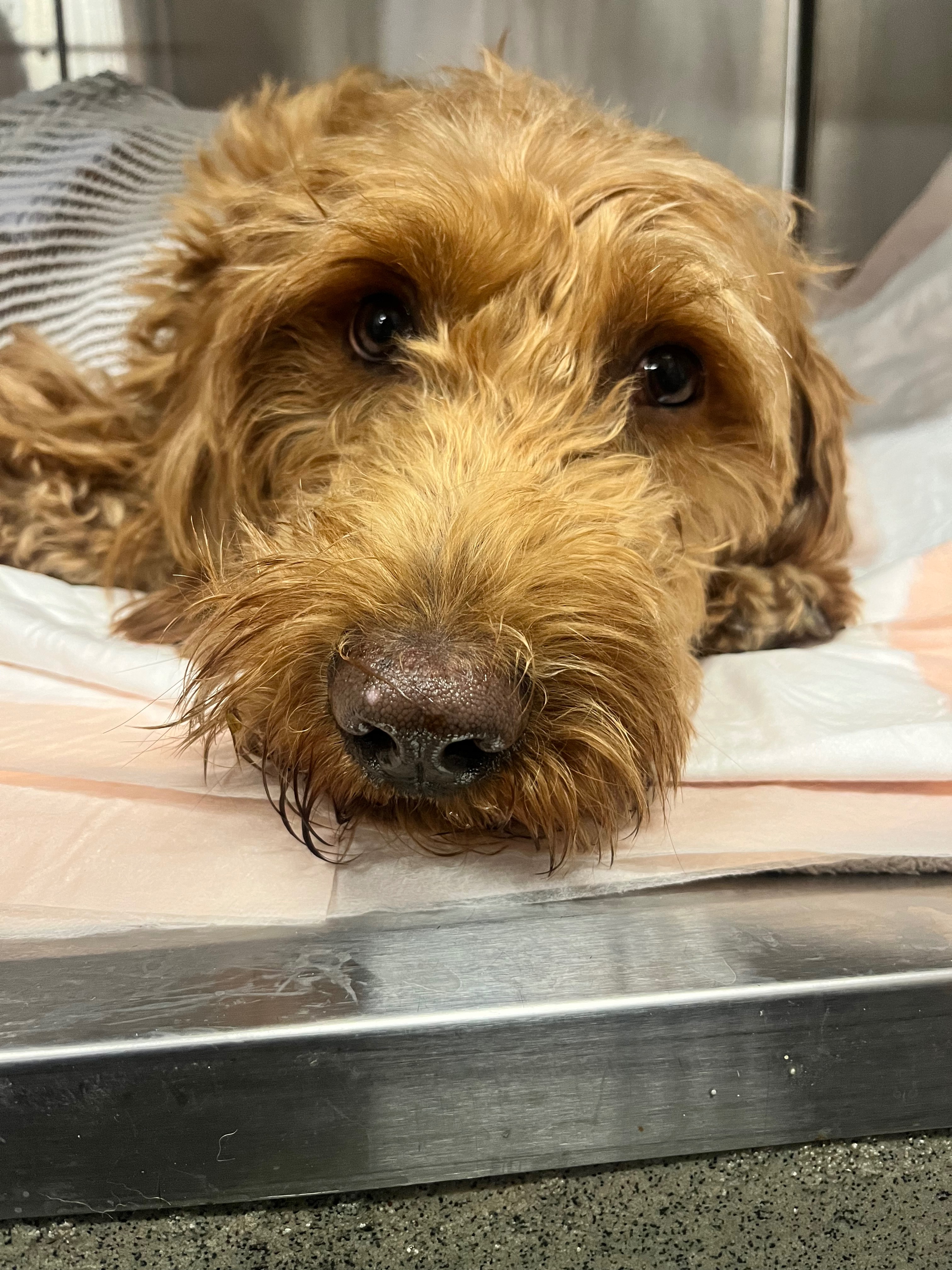 On December 12th, 2025, at 10 pm, Lucy had trouble with bowel movements and then started trying to throw up, but nothing would come out. I noticed her stomach was bloated, and she started whining in pain. I took her to the emergency vet and was told she had GDV (Gastric Dilatation-Volvulus), also known as bloat, stomach torsion, and twisted stomach. It's a deadly, sudden condition where the stomach fills with gas, fluid, or food, and then the twisting causes the distended stomach to press onto large blood vessels, disrupting the blood flow to internal organs, including stopping the blood flow to the stomach or spleen.