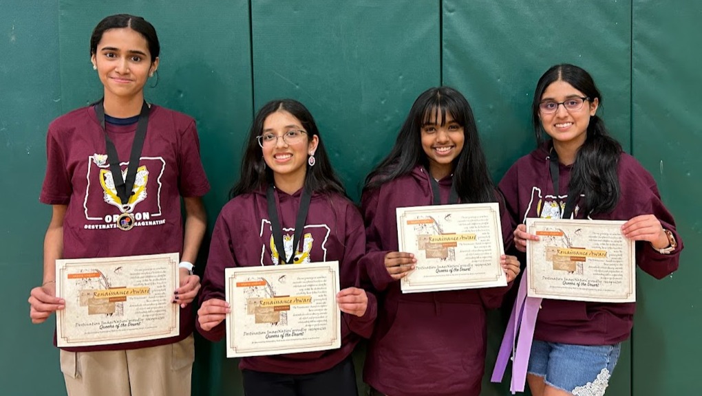 Our curiosity about science and the interest in STEAM-based activities brought us together as a team – leading to competing at Destination Imagination (DI) 2024. Through our hard work for the past 7 months, and with unwavering support from our families, we won the 1st place trophy at the state DI competition and a special award (Renaissance award) for originality and excellence in research, teamwork and presentation. The next stop on this wonderful journey was receiving the invitation to travel to Kansas City and compete at the Global Finals of Destination Imagination (DI) in May 2024. This journey so far has provided us with valuable educational experiences that will propel us on the path of success for the rest of our lives.