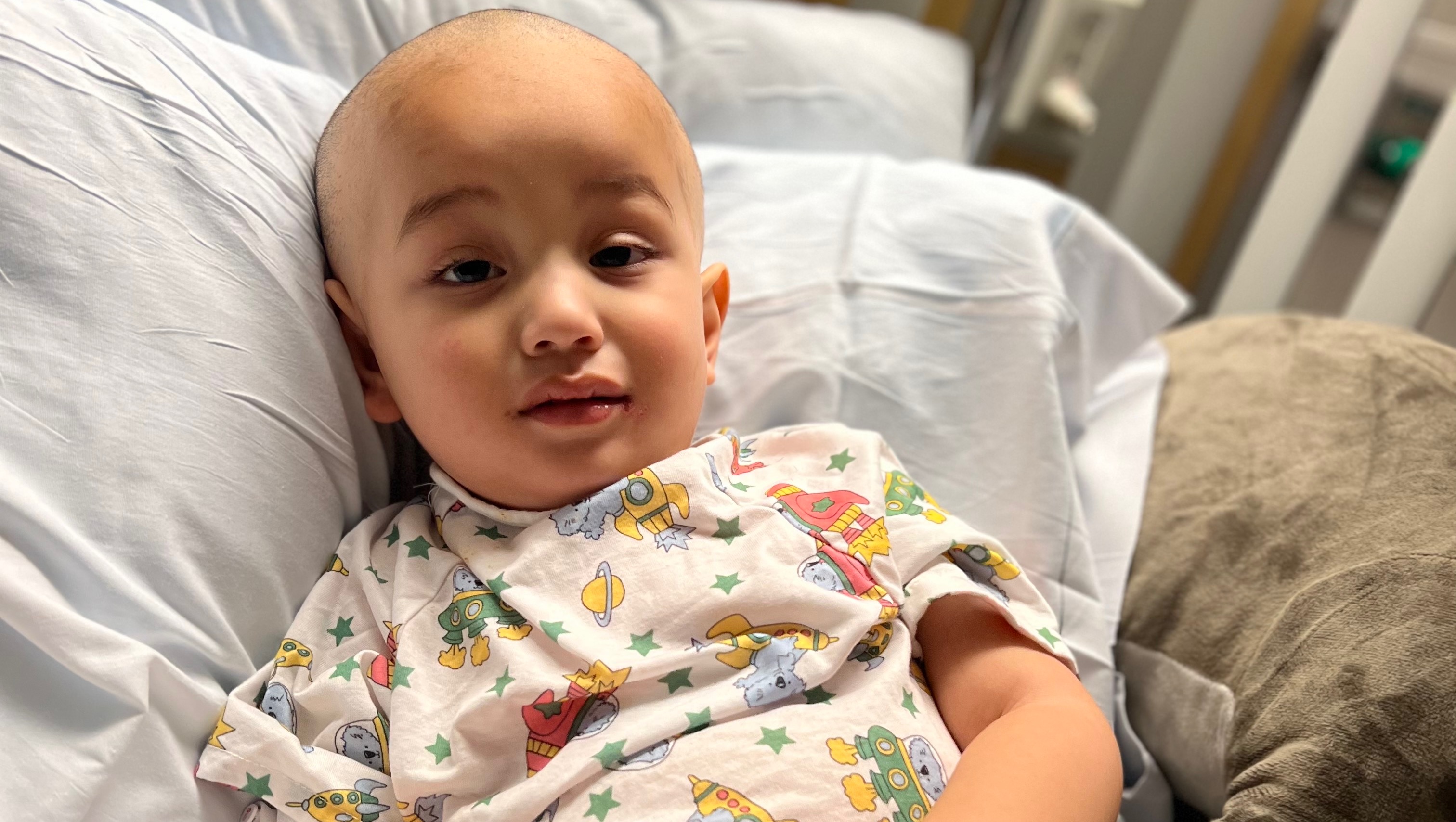 First week at the hospital with his favorite dinos keeping him company:
