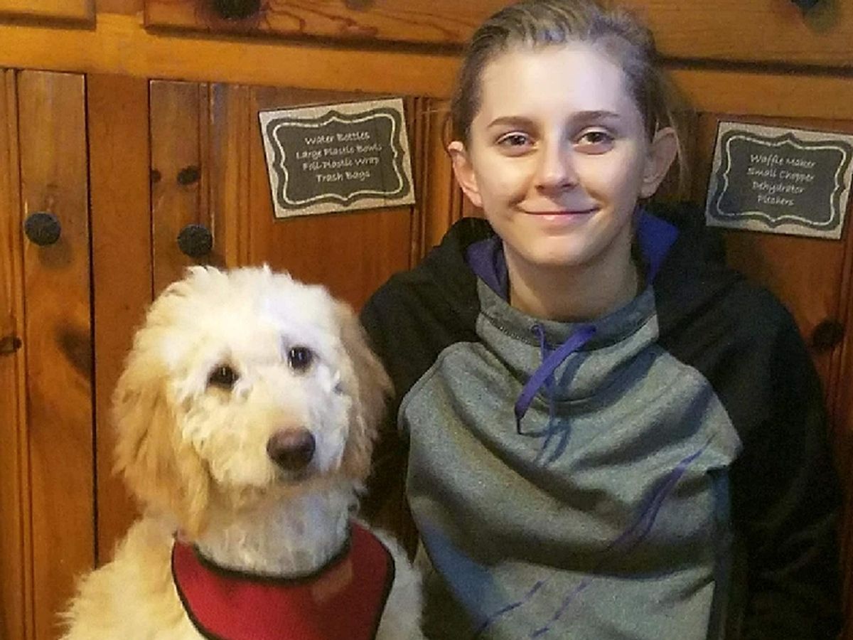 Hi folks! My name is Jasper and I was chosen for a unique job. My best friend, Caitlin, needs me to comfort her, keep her safe and be her memory! My Caitlin has a brain injury from 2 years ago which left her with a memory lasting only 60 SECONDS! That's right....every time she sees me I am brand new to her but she isn't new to me. I love her so much! I was donated to Caitlin a few months ago because my mom said I was patient and smart. She said I was made for Caitlin. I have to say I completely agree. I love making Caitlin smile as we play. I enjoy learning how to walk on my leash by her side. I love how she trusts me every day to be her best friend when life has been so hard for her. Caitlin's parents are working hard to give her the best chance at healing and they've spent their life savings searching for medical treatment. So I need to ask folks to help me be the best friend I can to Caitlin. I'm 7 months old now and it's time to visit the vet for that "special" surgery to help me be calm and focus on Caitlin. Once I get that out of the way I hope to attend SCHOOL to learn how to be Caitlin's memory for her daily routine. Any donations you can make will help me be the BEST FRIEND ever and love her as I know I was made to do!