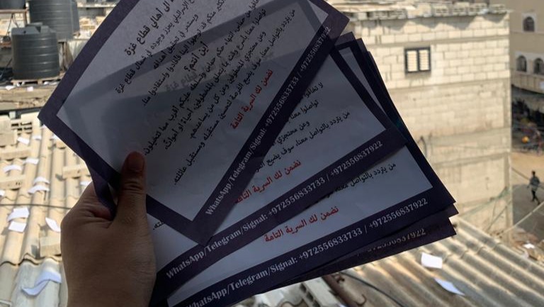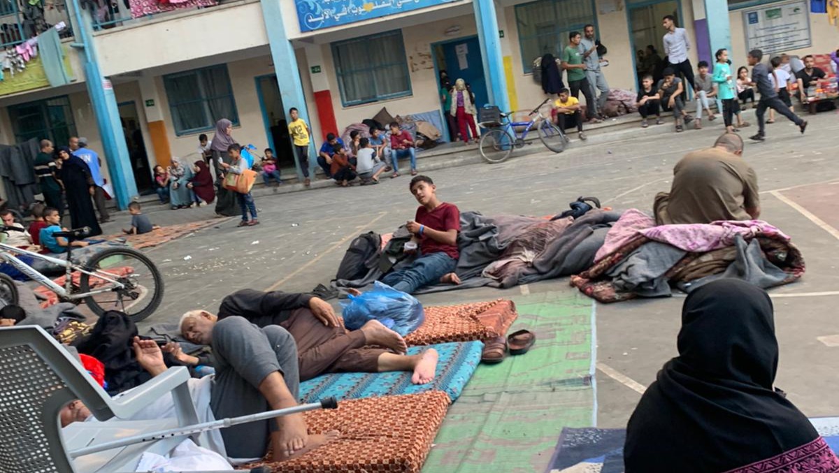 We went to a shelter school in Gaza, after which we were forced to leave that school because of the leaflets that were thrown at the school demanding its evacuation.