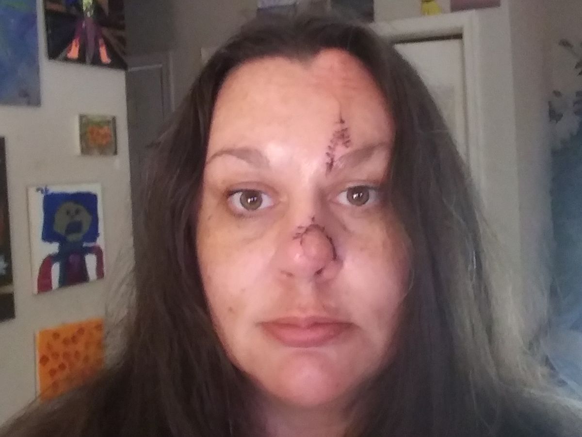 Tina has advanced Squamous Cell Carcinoma, not normally an aggressive type of cancer, but a small percentage of people fall into this very serious condition where the nerves become involved....This year, she lost part of her nose, as it infiltrated past the skin and into the cartilage and now her nerves. This puts it on the fast track to feed directly to her brain. So after completing a very long skin graft procedure to cover the large hole cancer left in her nose, she is currently doing the radiation therapy. The radiation is to her face, and will follow the nerve path of the nose, around her left eye and to the base of her skull, in hopes of preventing the disease from progressing to her brain.