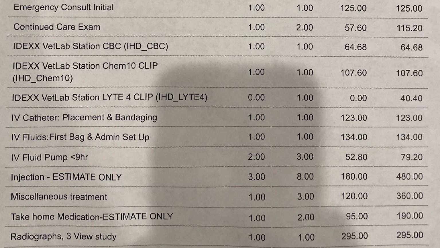 Below are images of the estimate for his two-day stay, for transparency.