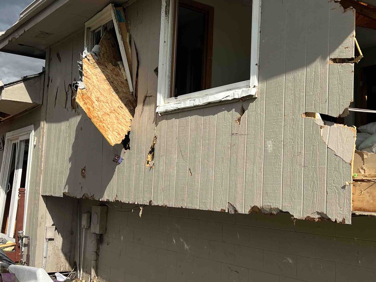 This neighborhood took a direct hit from the tornado 4-26-2024 and unfortunately their house was damaged beyond repair. All their belongings in the house have been damaged by the rain, glass, and other