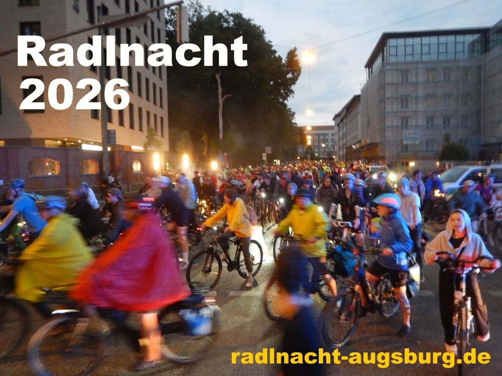 Zum dritten Mal organisieren wir Bürger*innen ehrenamtlich die beliebte Augsburger Radlnacht. Sie findet am Samstag den 18.07.26 statt.