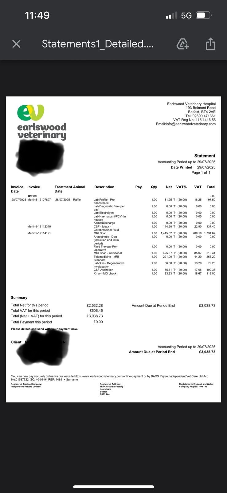 Raffie was referred for an MRI, by a neurologist as the physio was concerned about his neurological condition, the risks of seizures and worried with the lack of feeling his tongue, about his ability to swallow and the risk involved in that. Raffie is the sweetest boy who is happy despite his disabilities, he loves to play and just be a dog, hes only young and we recently lost Henry, so we want to do everything we can to ensure we dont lose Raffie too.