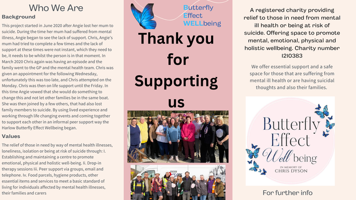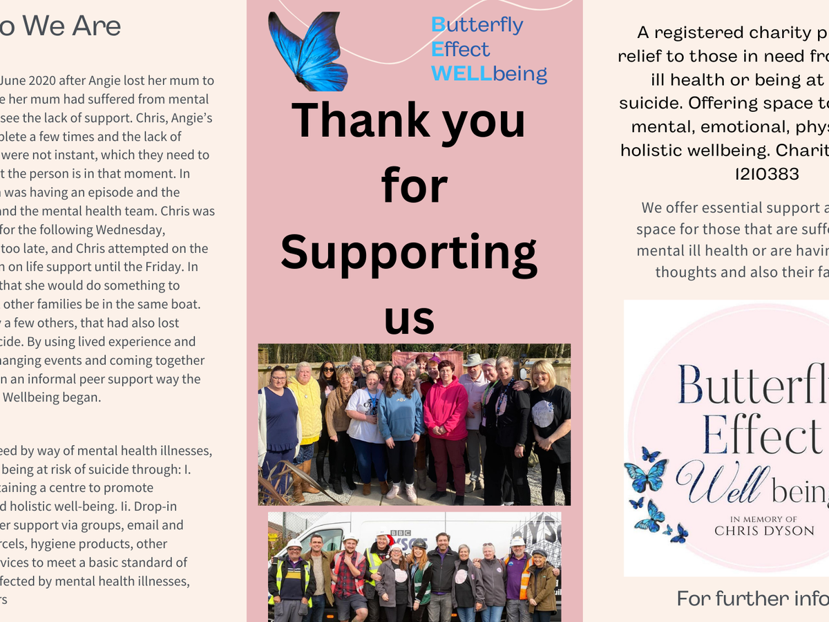 You can make a difference by donating today to BUTTERFLY EFFECT WELLBEING.