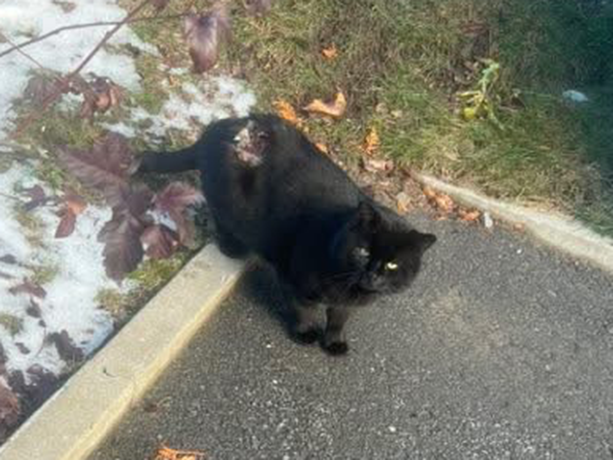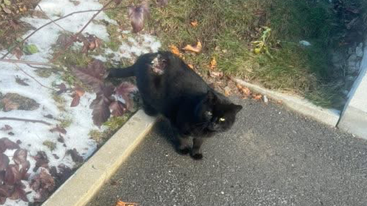 This little black cat has been wandering the streets of Laval for months — and he desperately needs help.
