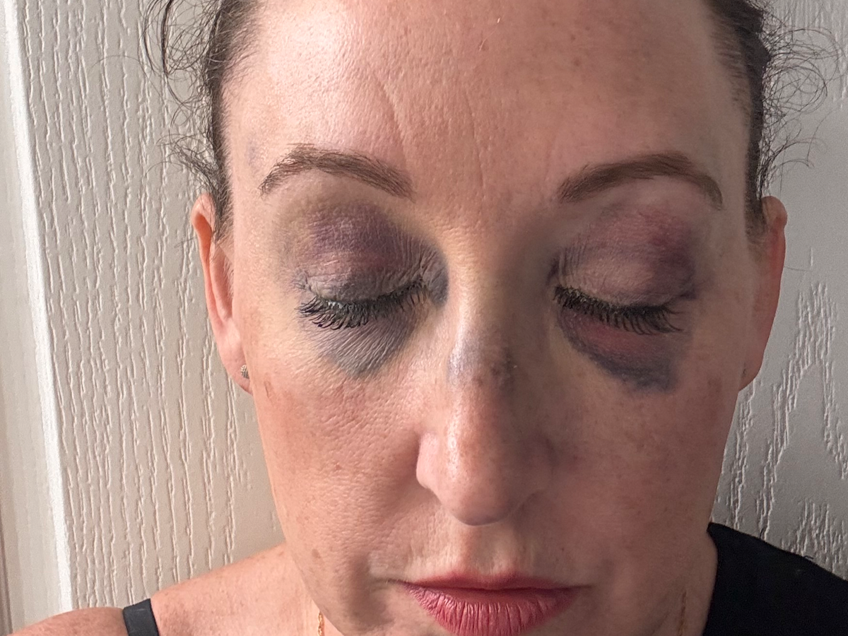 I have a concussion, broken cheekbone, fractured sternum, 5 broken ribs, fractured spine, fractures hip and fractured knee- Not counting the massive bruises all over. I still have what looks like dark circle under my eyes- which is what is left from the bruises to my face 7 weeks later.