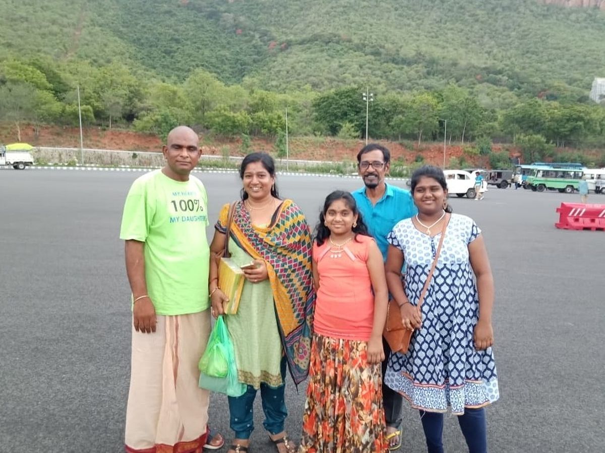Kandi Raj Kumar from Vijayawada, India is a very cheerful, fun-loving and affectionate person and is our childhood classmate. He worked as a welding inspector in Qatar for the last 6 years and finally decided to move back to his hometown in India to reunite with his loving wife and two beautiful daughters. The family decided to travel to Tirupati to get the blessings to continue their pleasant journey forward.