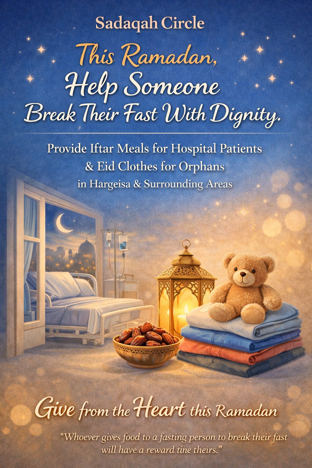 At Sadaqah Circle Foundation, this Ramadan we are raising funds to provide iftar meals for hospital patients who may be alone during this time, so they can break their fast with comfort and dignity.