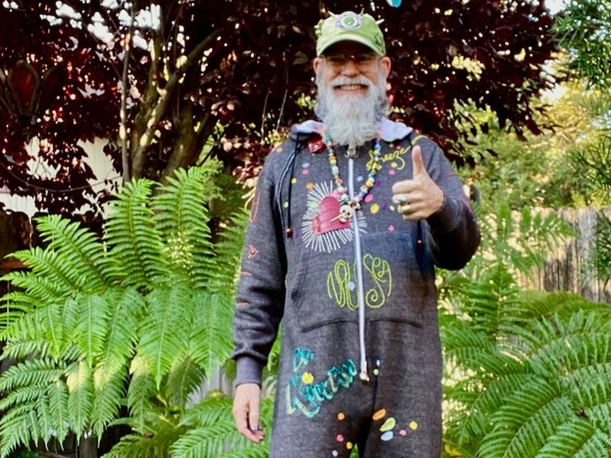 My name is Theresa. I am starting a go fund me page for our dear friend, Rand . He has and is a hardworking creative. He is wearing a Cancer suit he made marking his tumors. Here is his story.