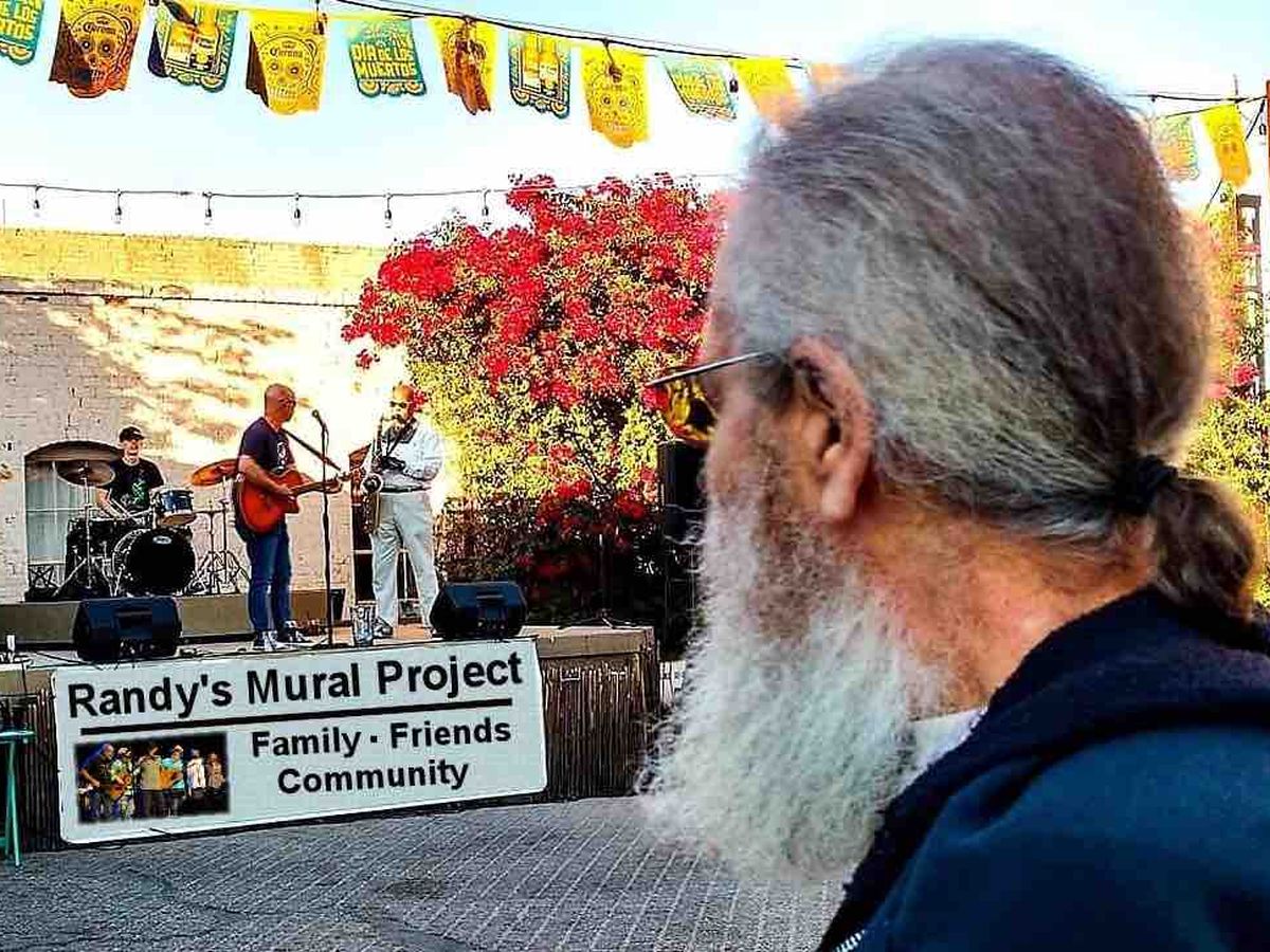 Randy worked hard for years building and keeping our community together. We all know that he looked forward to playing on the outdoor stage, it is one of his favorite places to perform. 4th Avenue Street Fairs, Community Food Bank fundraisers, benefits, birthdays, anniversary’s, celebrations and regular Saturday afternoon meetups all happened here. He brought us all together to celebrate life. This mural will be a visual reminder of his hard work as we continue his mission of bringing community together.
