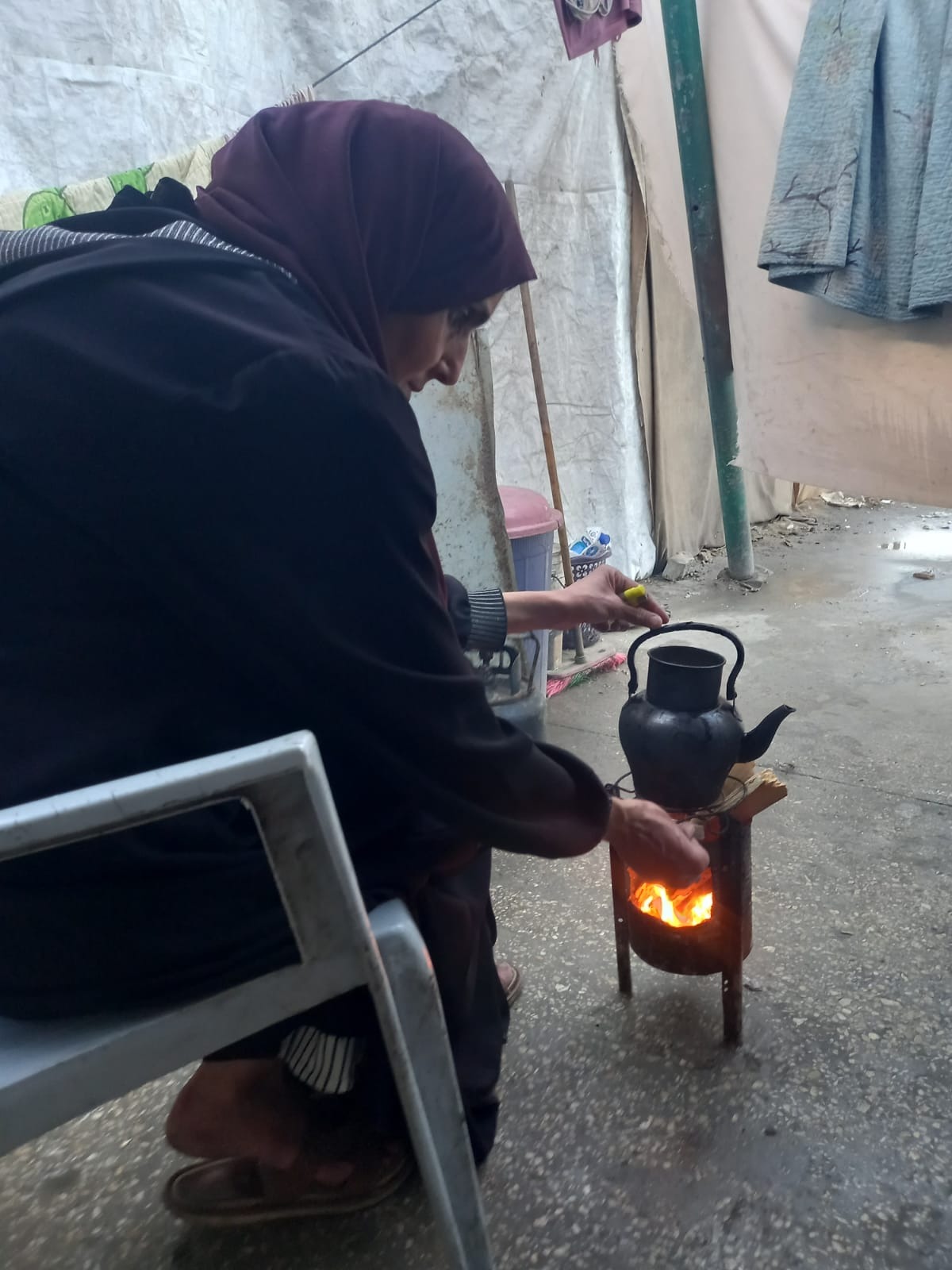 Our home — the place that once held our laughter and love — was completely destroyed ️. There isn’t a single stone left standing. Now, we live in a small, torn tent, with no electricity , no clean water , and often no food . My children sleep on the cold ground, and I try to comfort them with prayers when they cry at night .