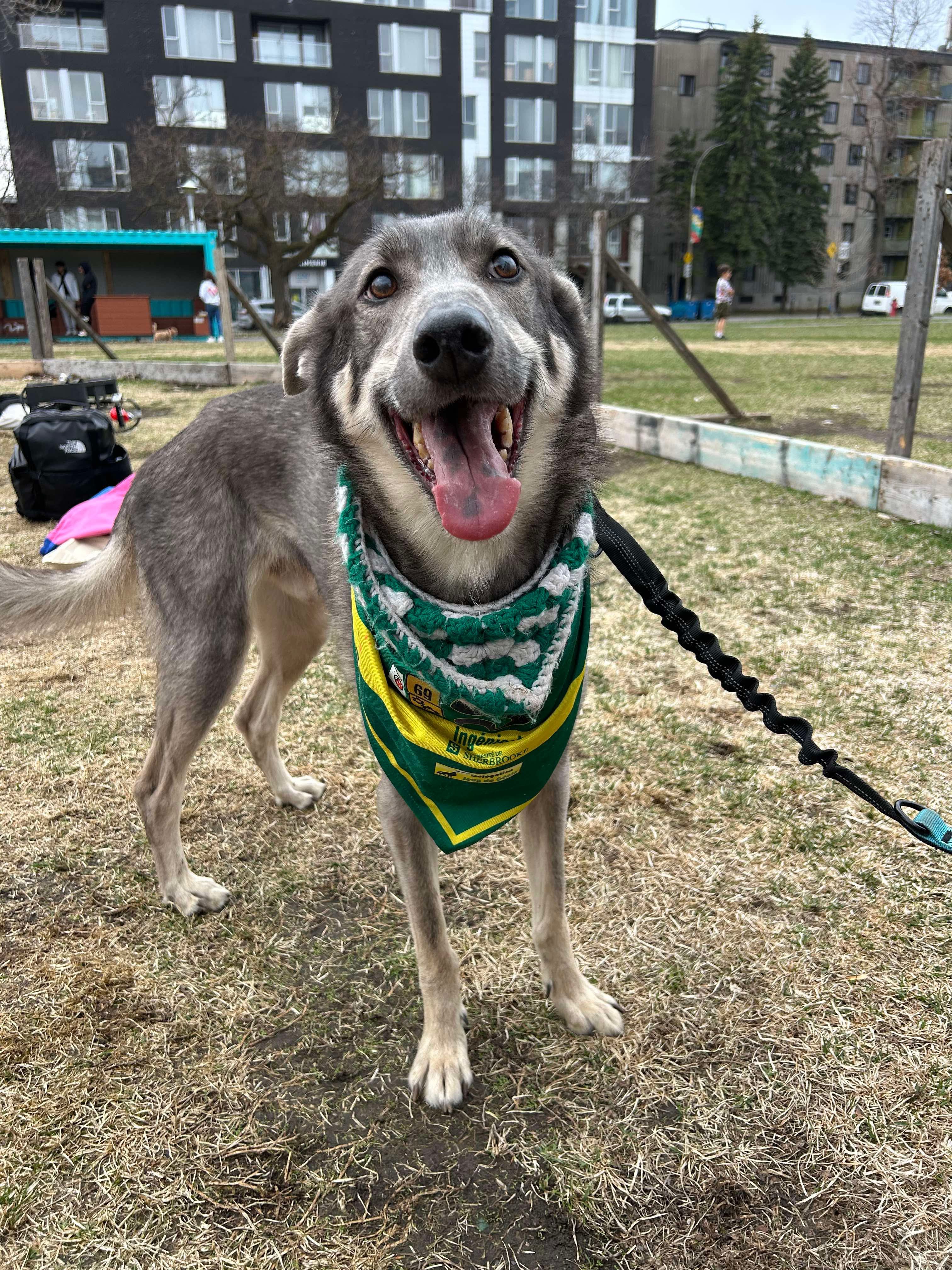 Ça fait 6 ans maintenant qu'il est mon number one partner in crime, et de ce fait je l'ai apporté à tous les événements possibles et imaginables auxquels il pouvait participer : au Smala, à la fin de semaine du Pinep ou des Jeux, au Quidditch, aux Pieds, au Frolf ou pour regarder des films avec nous au QG. De Montréal à Rimouski en passant par Sherbrooke, il adorait voir les gens et fouiller un peu partout comme un raton laveur pour trouver des saucisses. Et il a fait ces deux choses un peu partout au Québec, le sourire au lèvres et la queue qui battait fort en transportant sa bonne humeur avec lui. Il aimait tout le monde et faisait tout pour que tout le monde l'aime.