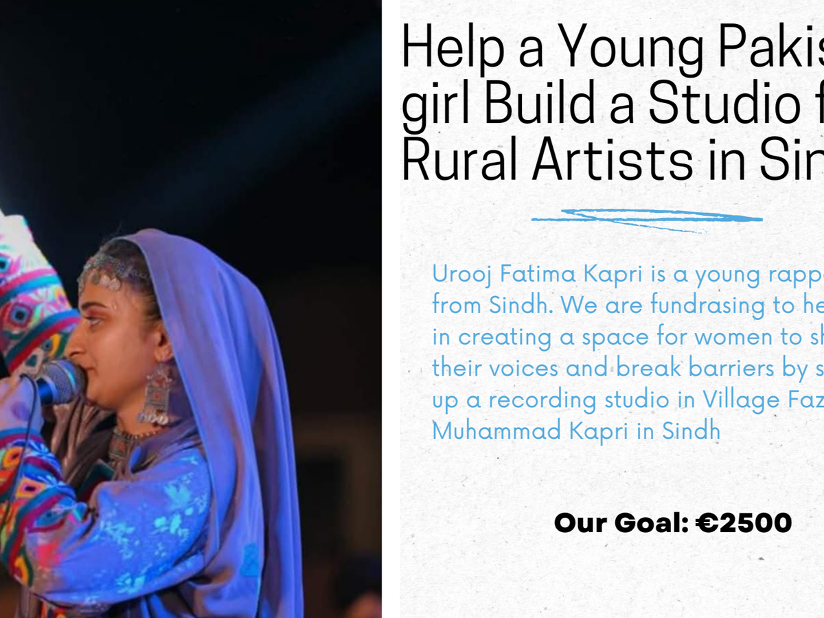 We are raising €2,500 to help Urooj establish a professional recording studio in her village. This studio will give women and young artists in rural Sindh a chance to share their voices, create music, and challenge the societal norms that hold them back.