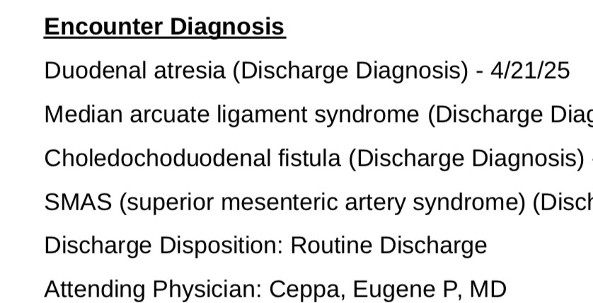 There are so many diagnoses that I haven't even collected on records but the most serious ones are the newest. Not only was I born with duodenal atresia, a rare congenital birth defect, affecting .01 - .02% of all births.