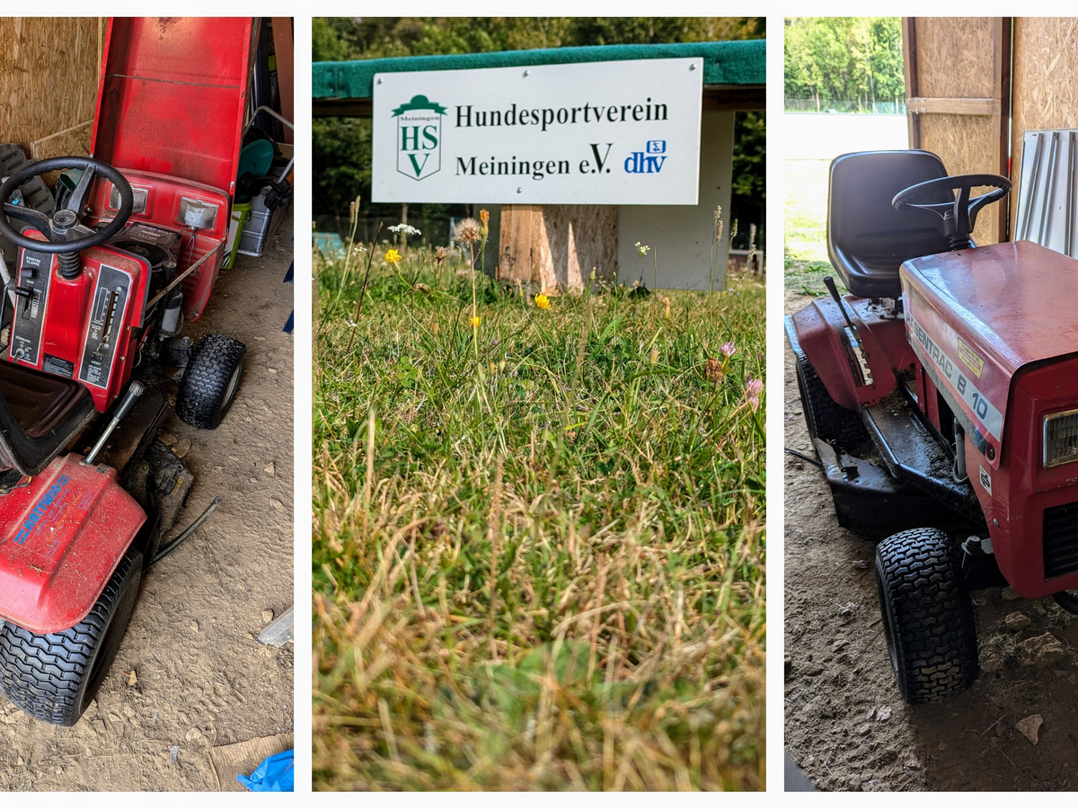 der Hundesportverein Meiningen benötigt dringend eure Hilfe. Unser Rasentraktor hat ganz unerwartet den Geist aufgeben. Damit stehen wir vor einem großen Problem, da wir unseren Hundeplatz nicht mähen können. Die Kosten für eine Neuanschaffung belaufen sich auf 3.200€, was für unseren kleinen Verein ein schwer stemmbarer Betrag ist.