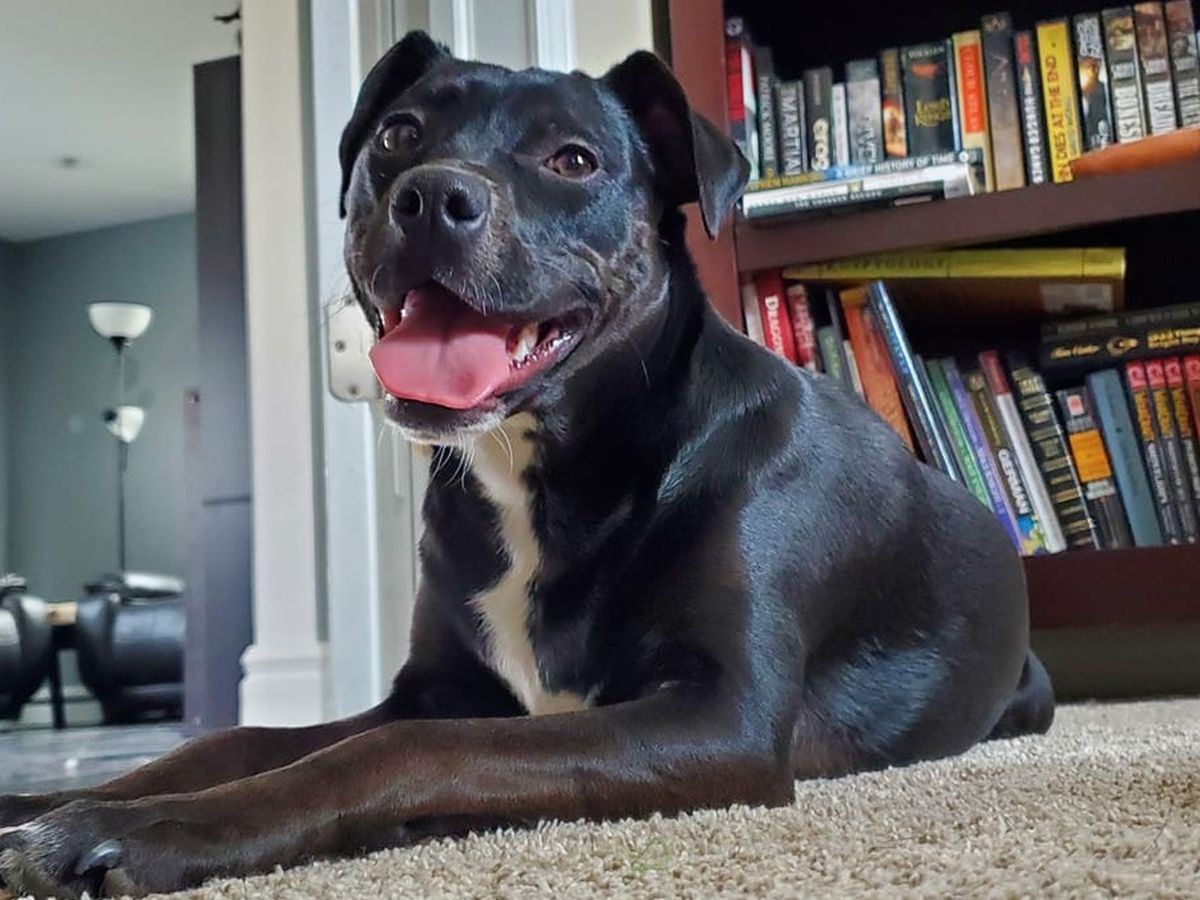 Hello! I'm SSgt Nathan Witt. My dog, Raven, is just over a year old. She's a black pitbull/chihuahua mix, the sweetest dog I've ever met and has quickly become a great emotional support pet. She loves playing with other dogs, specifically my parents' two brittany spaniels, but has had a rough time keeping up with them for a dog so young.