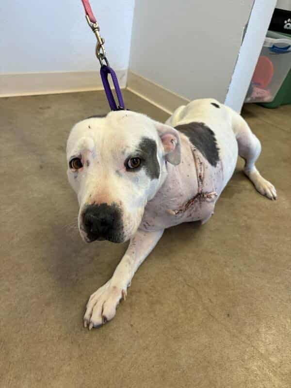 When faced with the difficult decision of whether to euthanize Raya or attempt a life-saving surgery, our team knew we had to give her a chance. Thankfully, our friends at the Veterinary Medical Clinic—who continue Dr. Fredregill’s incredible legacy of caring for shelter animals—stepped in to help. With their compassionate care and support, we were able to move forward with surgery to remove her injured leg. In loving memory of Dr. Fredregill, whose compassion continues to save lives like Raya’s every day. Raya’s recovery has been remarkable. She recently had her stitches removed and is now back at the shelter, surrounded by staff and volunteers who are dedicated to her healing. She still needs to be spayed and continues to receive physical therapy, learning to adjust to life on three legs. Through it all, Raya’s sweet nature shines—she loves to see people and enjoys short walks, always eager for affection and encouragement.