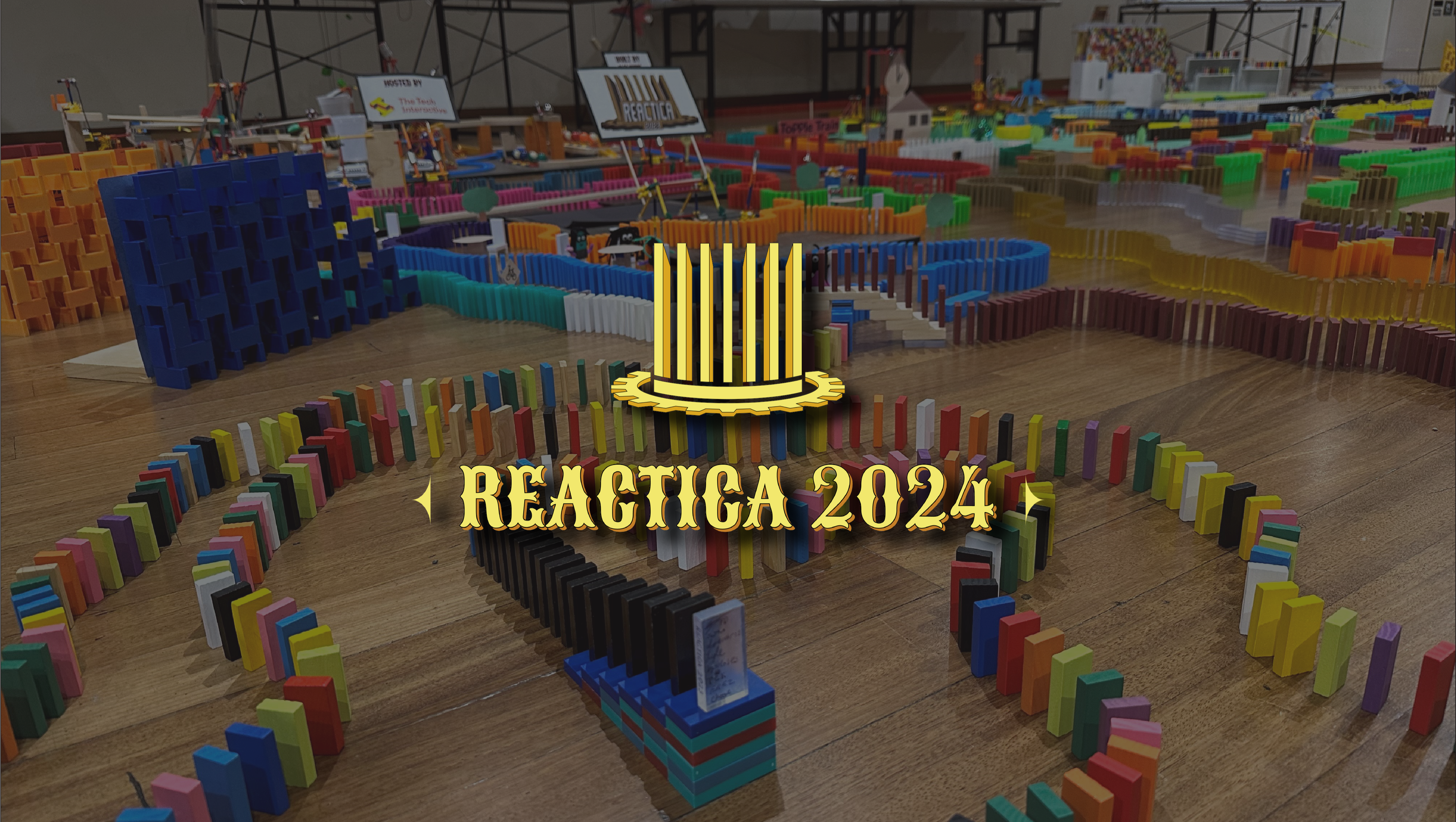 The theme of Reactica 2024 is "Kinetic Carnival": a giant domino and machine setup that looks like a miniature model of an amusement park. Following the success of last year's theme, "Topple Town", Reactica is once again bringing everyday atmospheres and environments to life by re-creating them out of dominoes and machines! The Kinetic Carnival will be complete with all different types of park entertainment, including thrill rides, carnival games, circus acts, parades, and food trucks. With this year's target of 40,000 dominoes and 200 machine steps, this will be by far the largest build the team has ever attempted.