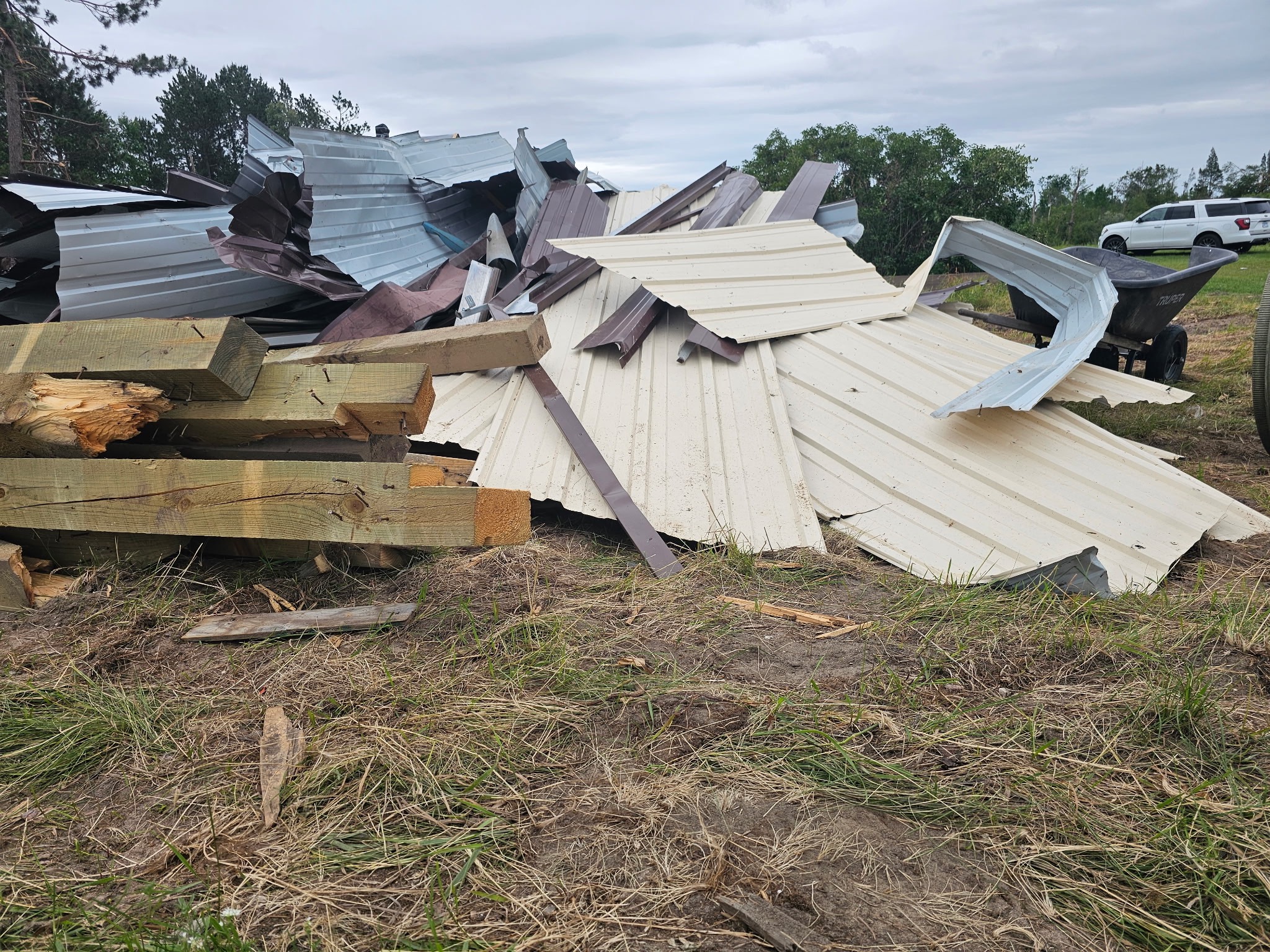 In the storm, my cousin’s family of 6 had significant water damage to their house, lost many personal belongings, and all of their outbuildings were destroyed, which resulted in them being displaced from their home for an unseeable future. The house currently has significant water damage which will result in a lot of the interior being gutted. The beginning of this proccess has revealed significant mold in the walls.